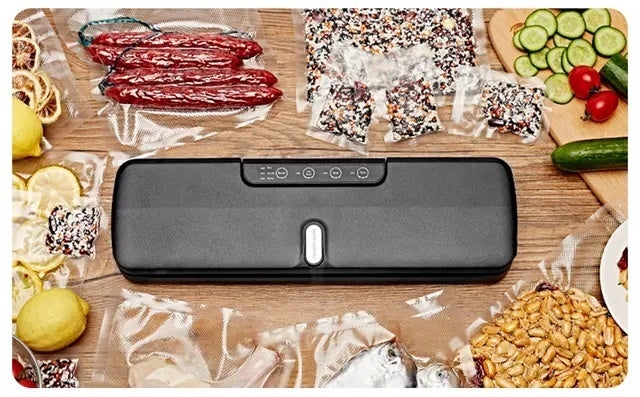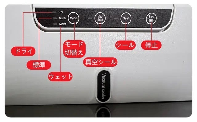 食品の種類に合わせて選べる複数の真空モードが搭載されています。モード切替ボタンで、自動真空シール、シングルシール、外部真空などのモードを簡単に切り替えることができます。液状の食品の真空シールには対応していない点に注意が必要ですが、簡単な操作で、さまざまな食品の保存ニーズに応えることができます。