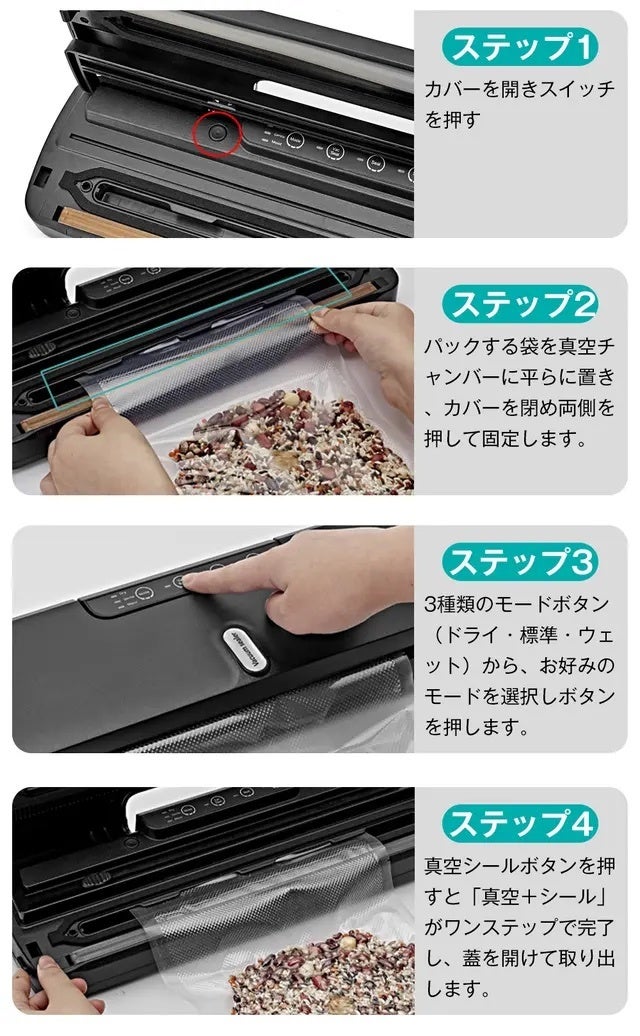 操作手順はたったの4ステップで簡単に鮮度をロック!