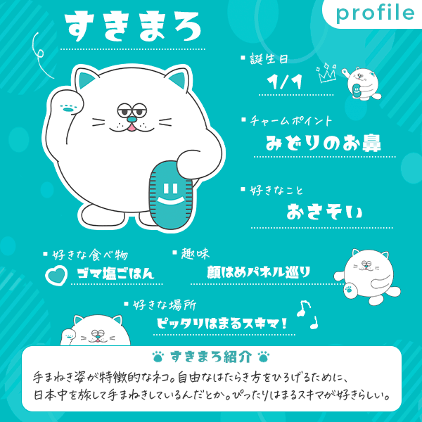 正解発表と共に、新キャラクター名称は「すきまろ」に決定したことをお知らせします。また、名称の発表と共にキャラクターのプロフィールも公開いたします。