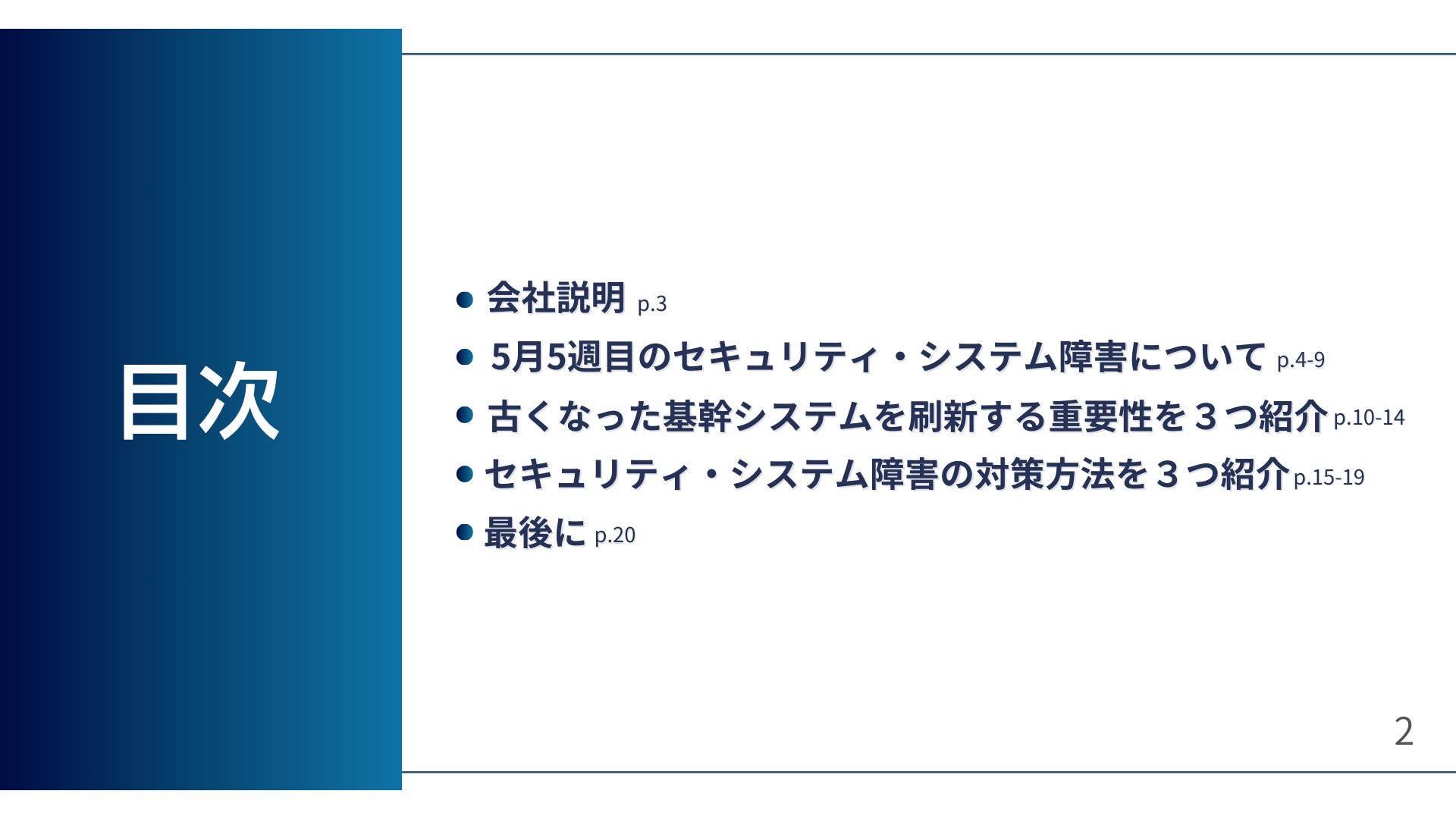本レポートのトピックは、最新のシステム障害ニュースからみる基幹システム刷新の際の注意点や重要点についてです。本レポートでは、最近報告されたシステム障害の中から影響が大きかったものをピックアップし、その原因と影響についても解説しております。