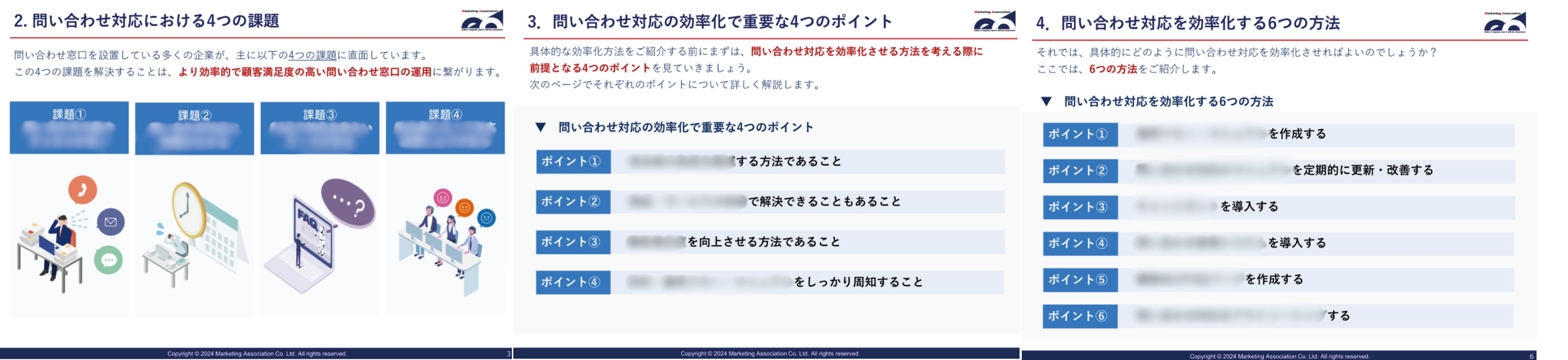コールセンター代行サービスを提供しているマーケティングアソシエーション株式会社(本社:東京都台東区 代表取締役:中園広和、以下当社)は、お役立ち資料「問い合わせ対応を効率化する6つの方法」を無料公開しました。