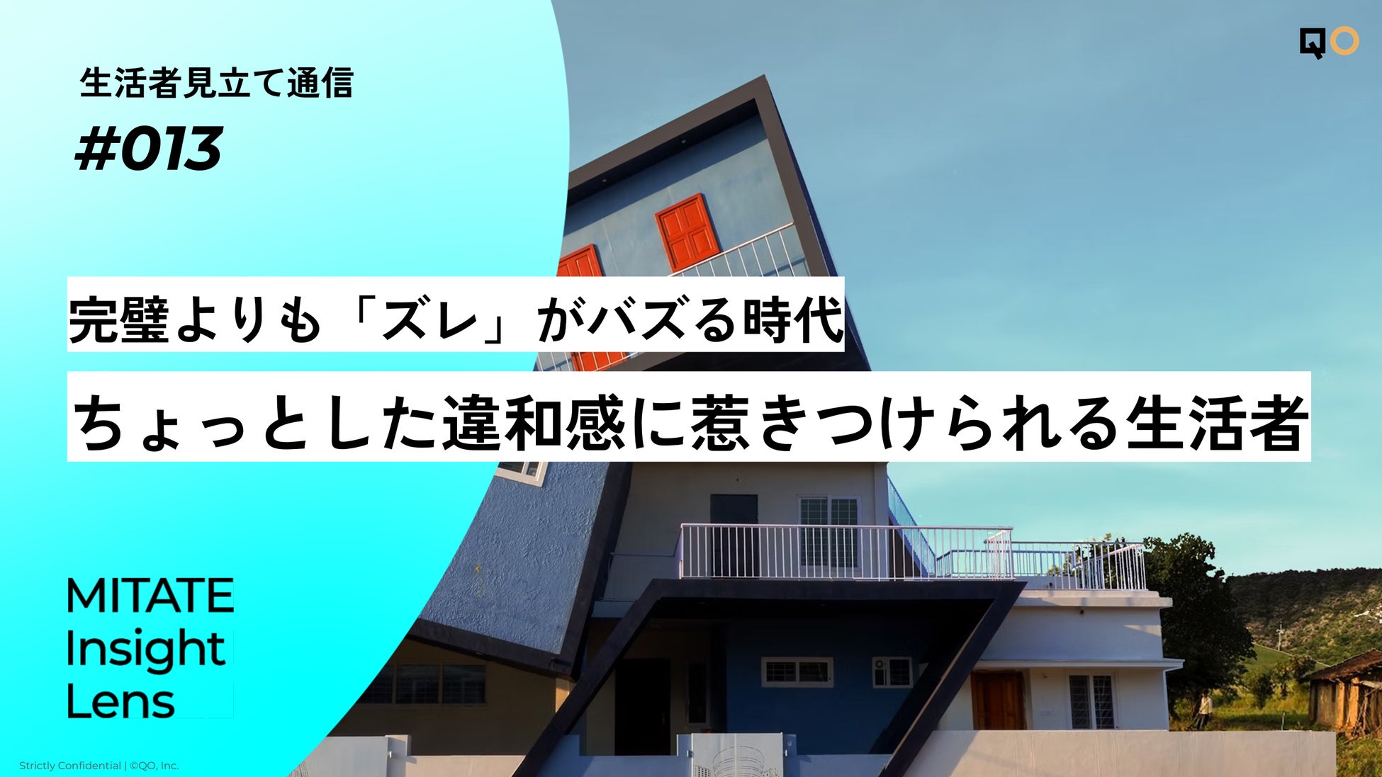 リサーチとプランニングを手掛けるQO株式会社(代表取締役社長:恒藤優/本社:東京都中央区、以下「QO」)は、2025年9月25日に生活者見立て通信の第13回「完璧よりも「ズレ」がバズる時代。ちょっとした違和感に惹きつけられる生活者」を公開しました。