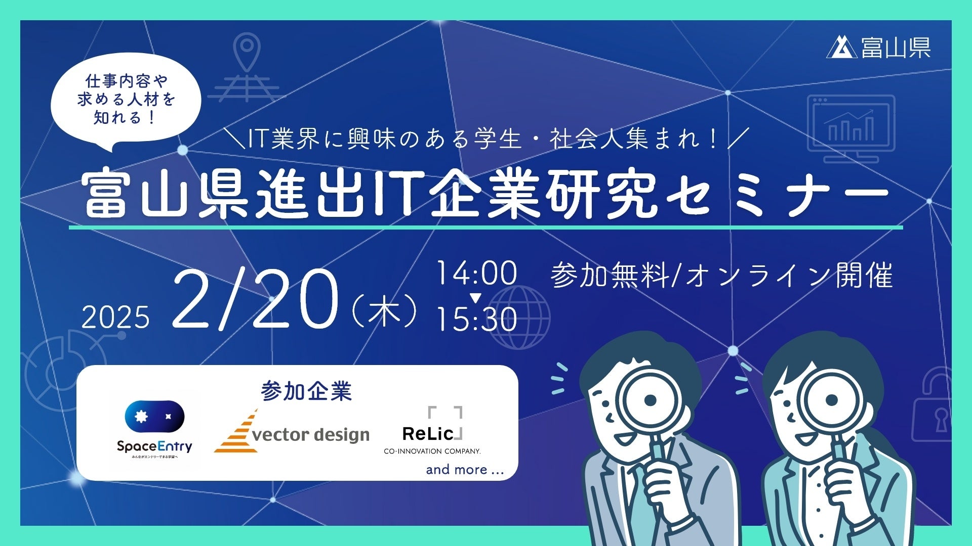 【富山県主催】IT業界に興味のある学生や社会人を対象とした「富山県進出IT企業研究セミナー」を2/20に開催!富山県に拠点をオープンしたIT企業の仕事内容や求める人材について知ろう!