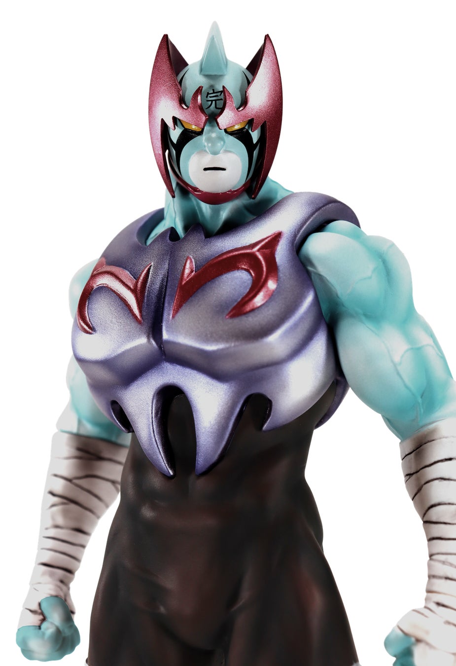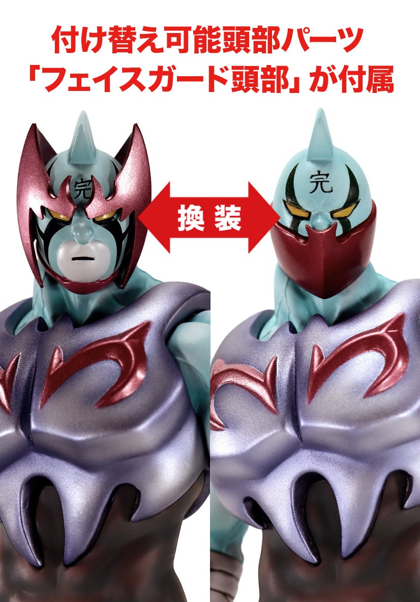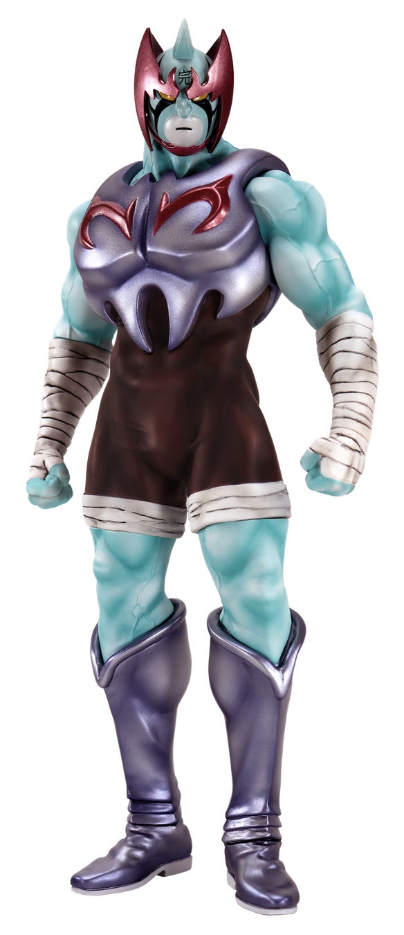 新章に登場する悪魔将軍のファイティングポーズを再現した3.1の造形で、全身が煌めく輝きを放つボディに、ブルーの鮮やかなグラデーション塗装を施しました。