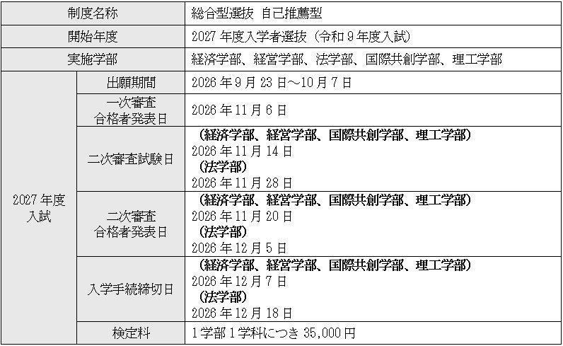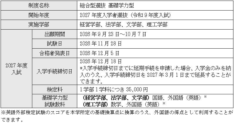※ 従前の総合型選抜で実施していた帰国生特別受験、社会人特別受験、外国人特別受験は、2027年度選抜からも従前どおりの内容で実施します。