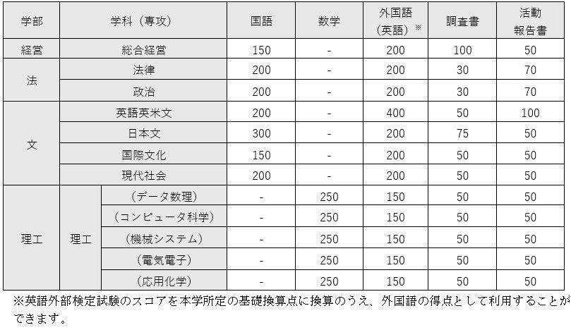 外国語(英語)は英語外部検定試験のスコアを利用可能。