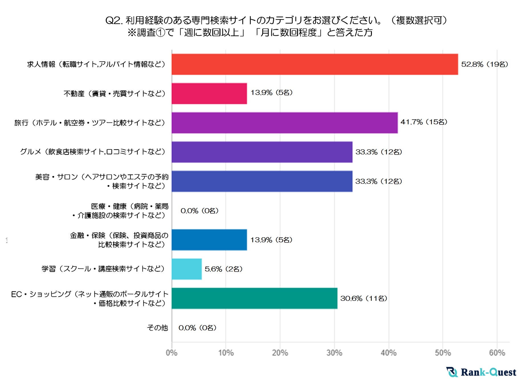 調査結果➁:利用経験のある専門検索サイトのカテゴリをお選びください。[複数選択可(注2)]※ 調査①で「週に数回以上」・「月に数回程度」と答えた方のみ回答