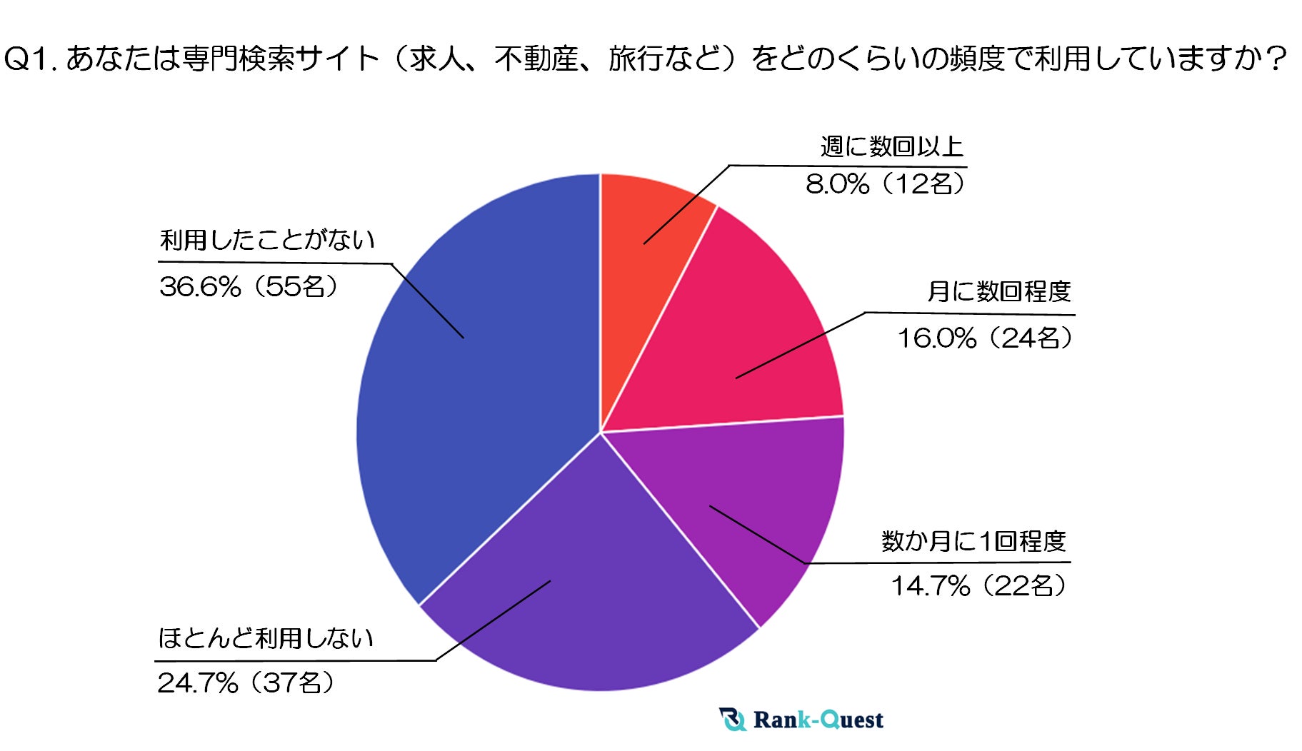 調査結果①:あなたは専門検索サイト(求人、不動産、旅行など)をどのくらいの頻度で利用していますか?