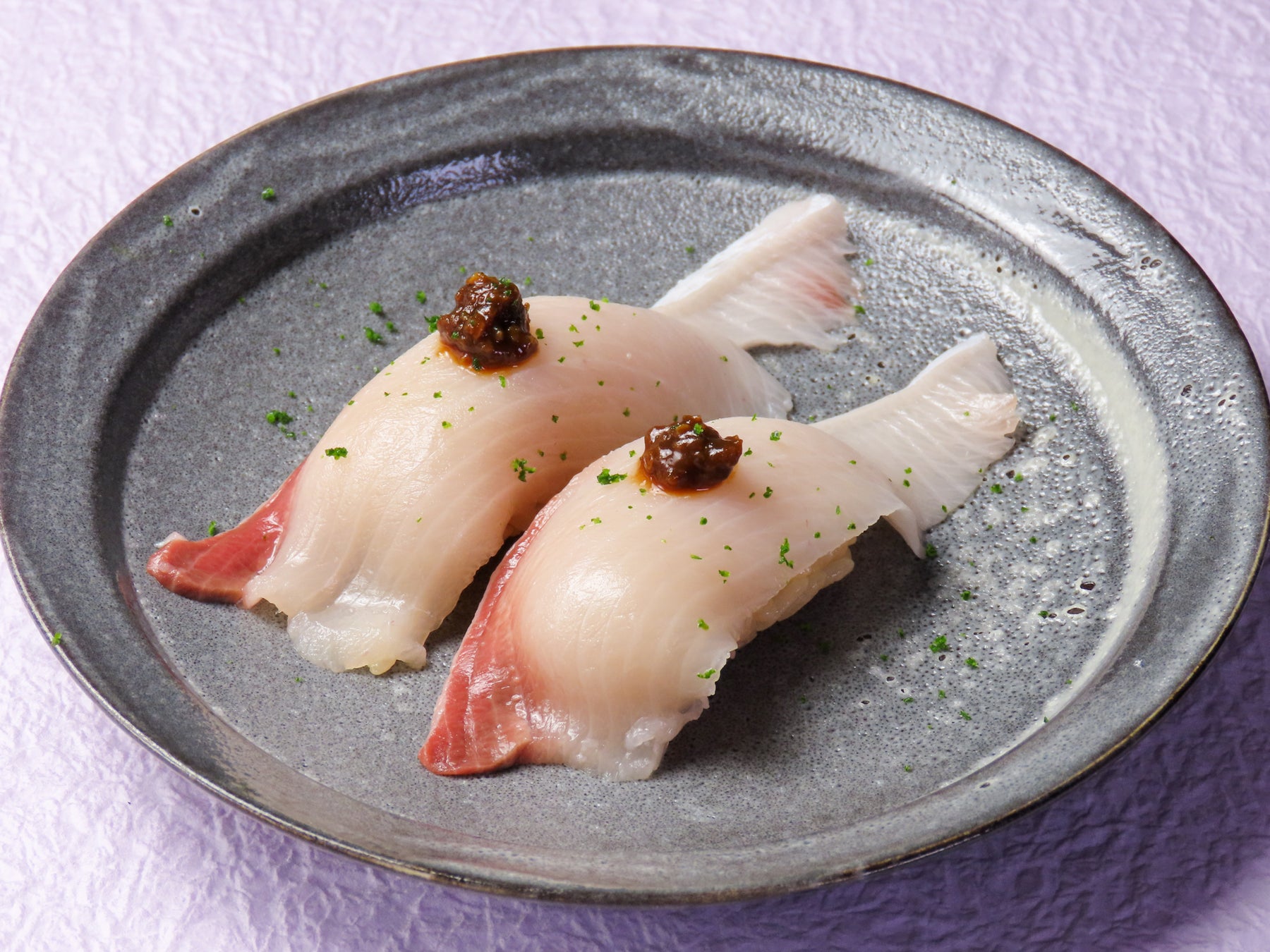 脂が乗り始めた函館産の鰤の握りは、味噌の旨みと柚子の香りが印象的な逸品です。