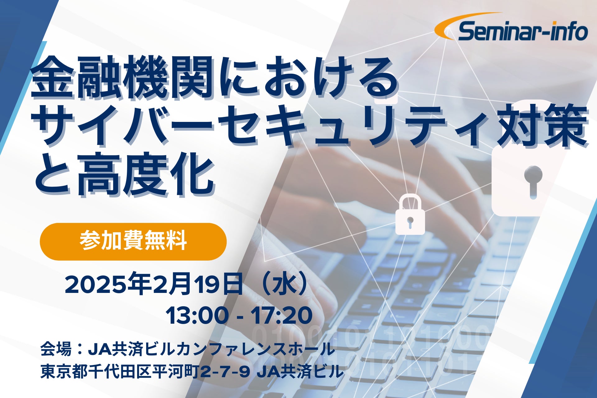 株式会社セミナーインフォ(本社:東京都千代田区 代表:小西 亘)は、2025年2月19日(水)にFINANCE CONFERENCE「金融機関におけるサイバーセキュリティ対策と高度化」を開催いたします。