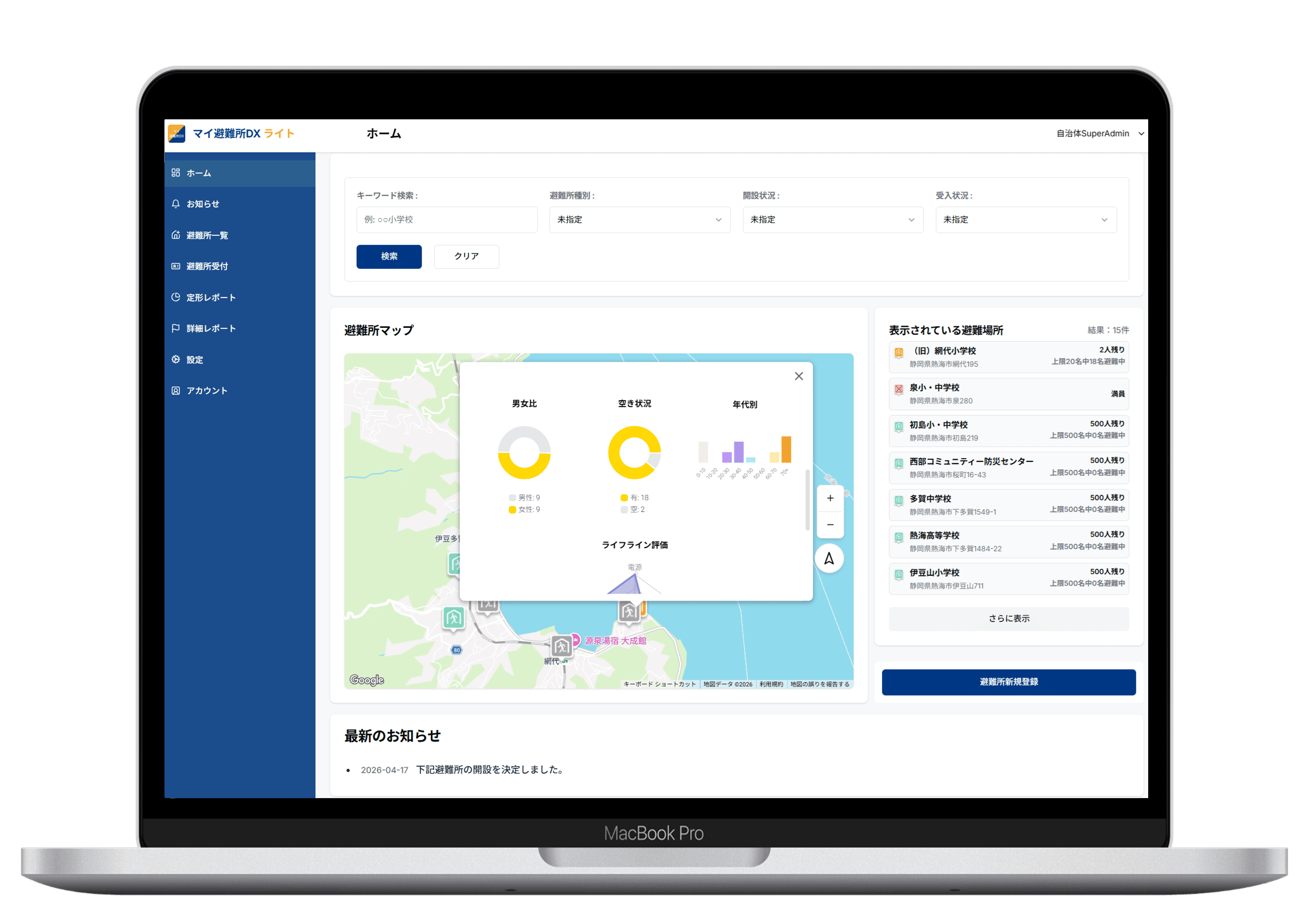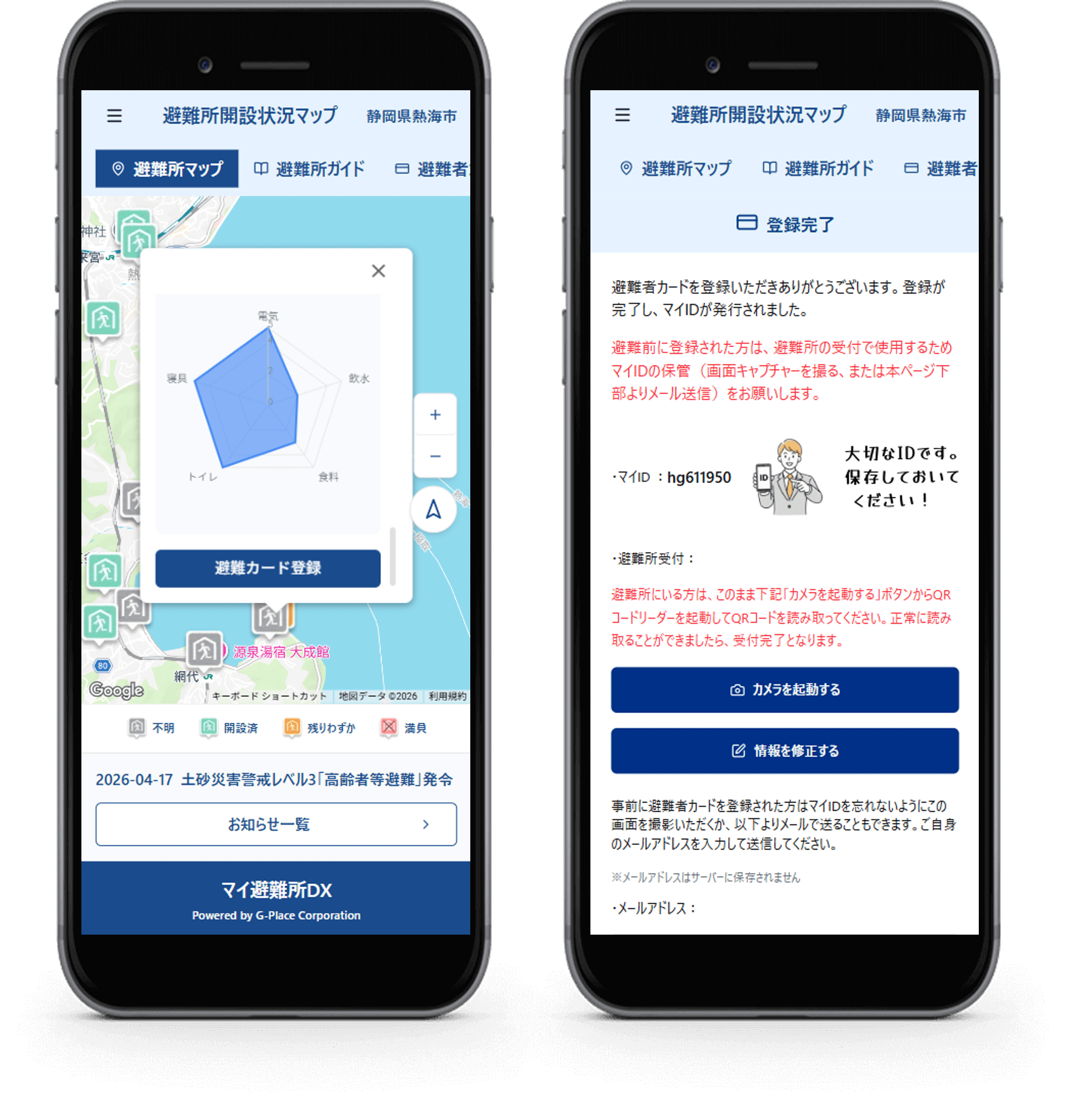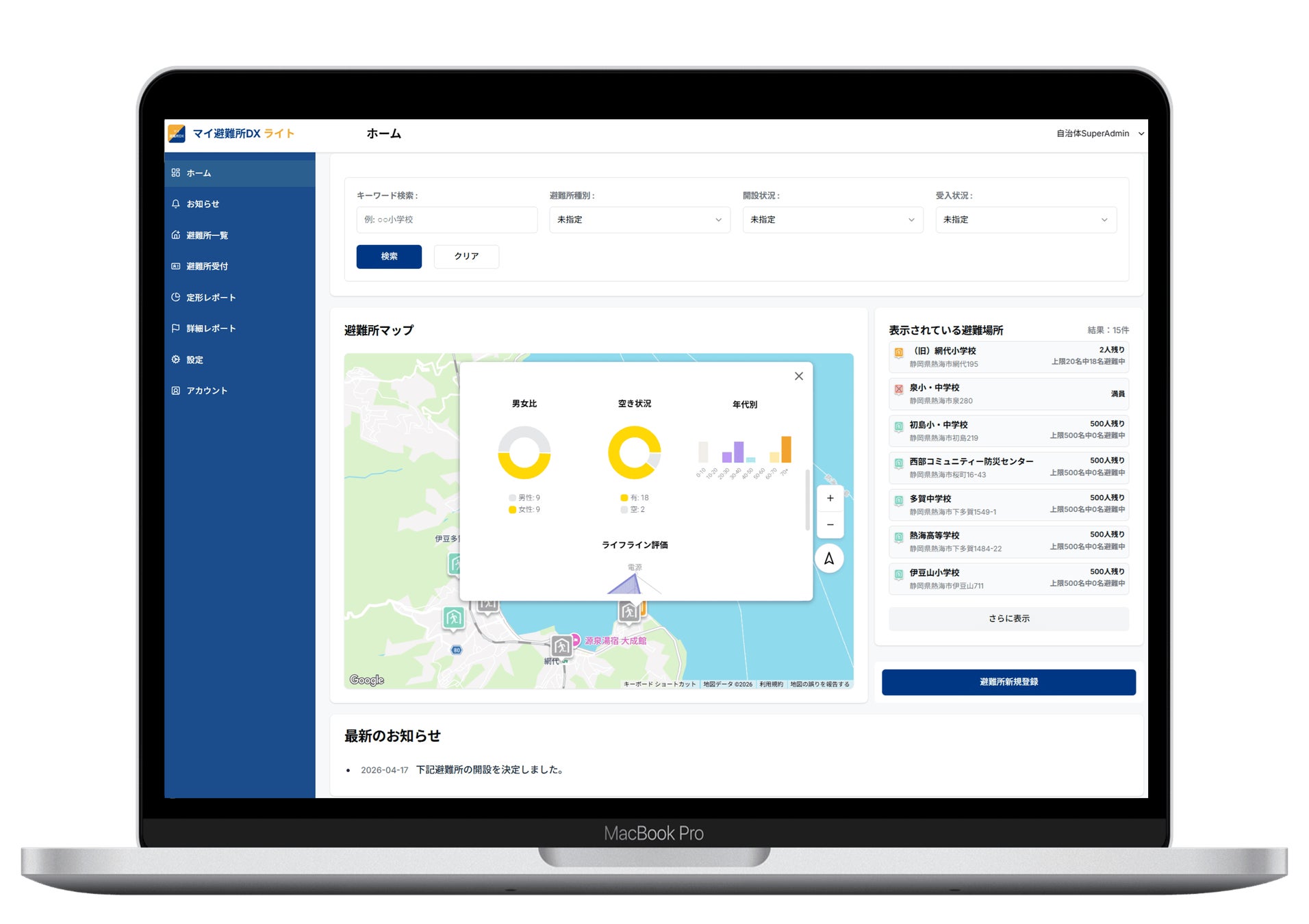 自治体向けの業務支援を行う株式会社G-Place(本社:京都府長岡京市、代表取締役社長:綾部英寿、以下「当社」)の公共イノベーション事業グループは、個人情報管理不要で避難所の管理運営のデジタル化を可能にする避難所管理システム「マイ避難所DXライト」を開発いたしました。開発完了を受け、全国の自治体が1ヶ月(延長については応相談)のあいだ実際の操作を確認できる「デモ版」を、2026年4月27日(月)に提供開始いたします。