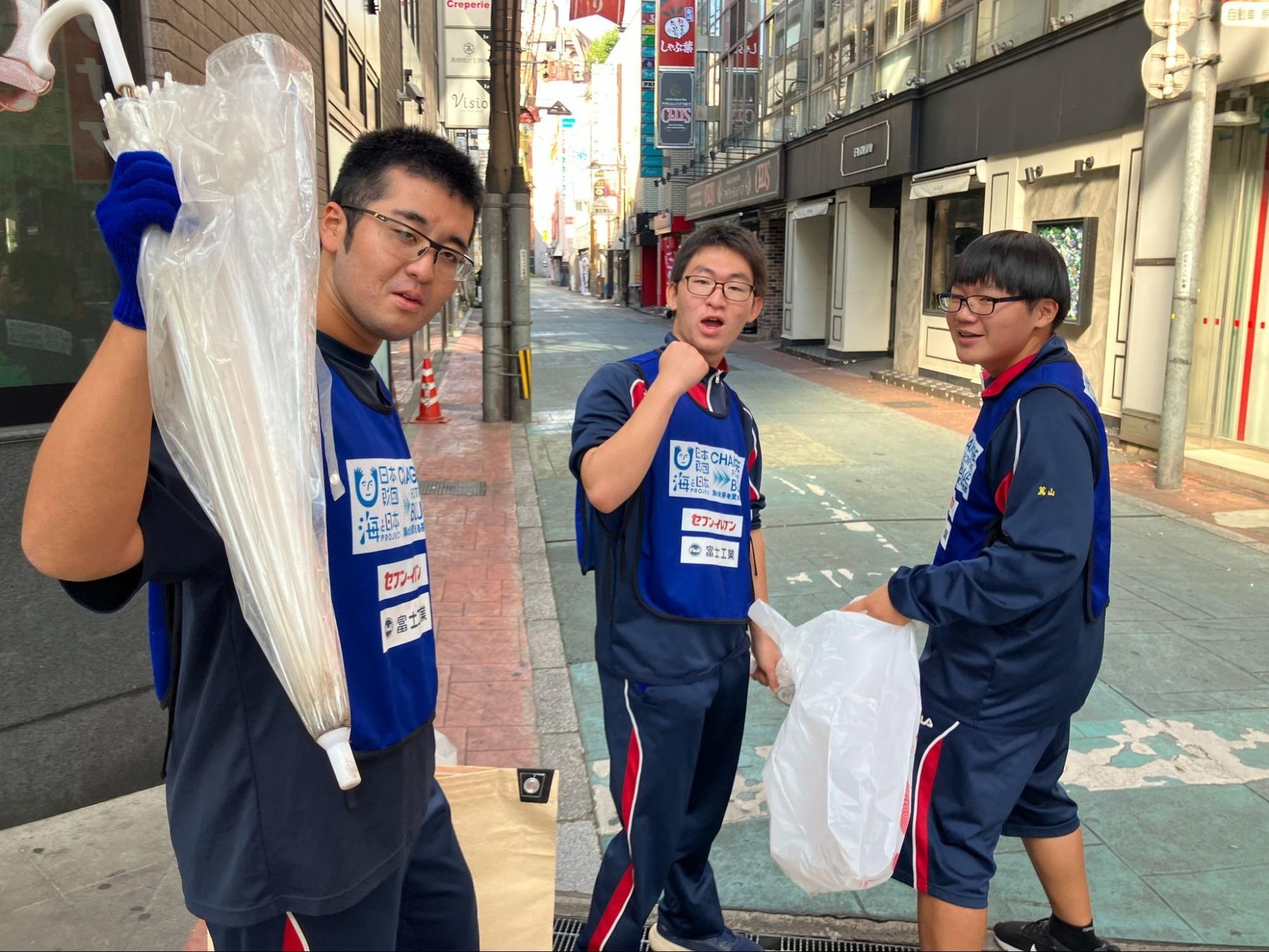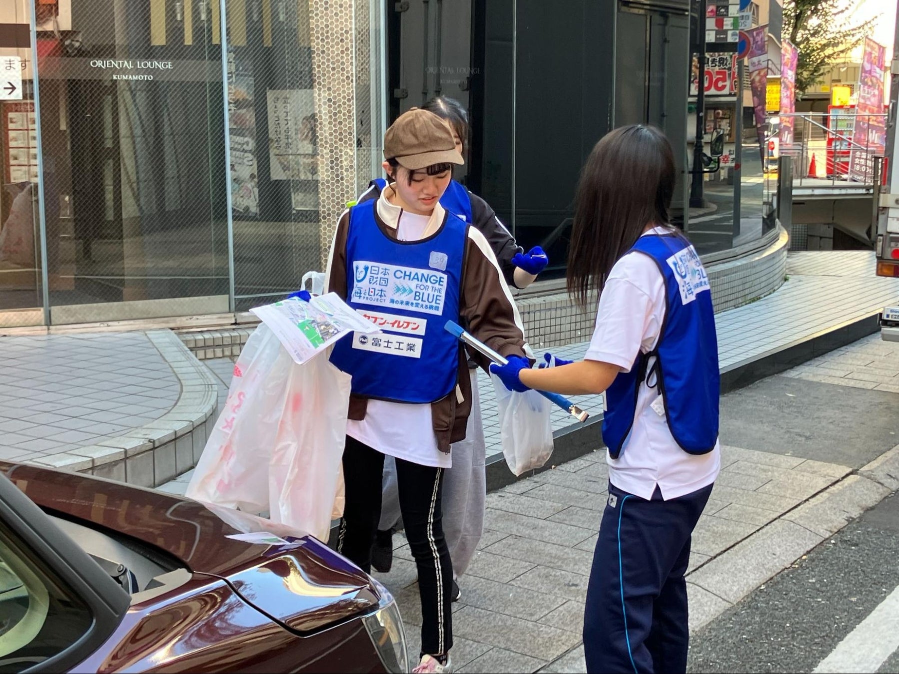 会場となった下通エリアは熊本市の中心部で、毎日多くの人が訪れる商店街は、常日頃からきれいに清掃されているとはいえ、早朝はまだまだごみがたくさん落ちています。下通は海からはずいぶん離れていますが、有明海に注ぐ一級河川「白川」を臨むエリアです。まちのごみが川から海へ流れつき、海洋ごみになるという事実を参加者全員が強く意識しながらごみ拾いを開始しました。仲間と協力し、ごみを拾いを楽しみながら競う高校生の姿はとても素晴らしいものです。参加者の一人は「海ごみと商店街のごみの関係がわからなかったのですが、今回参加したことで理解できました。(自分は)海の近くに住んでいるので、より自分ごととして考えられるようになりました。友達にも伝えたいですし、たくさんの高校生にスポGOMI甲子園に参加して体験してもらって、一緒にまちや海をきれいに保っていけたらいいと思います!」と力強く話してくれました。