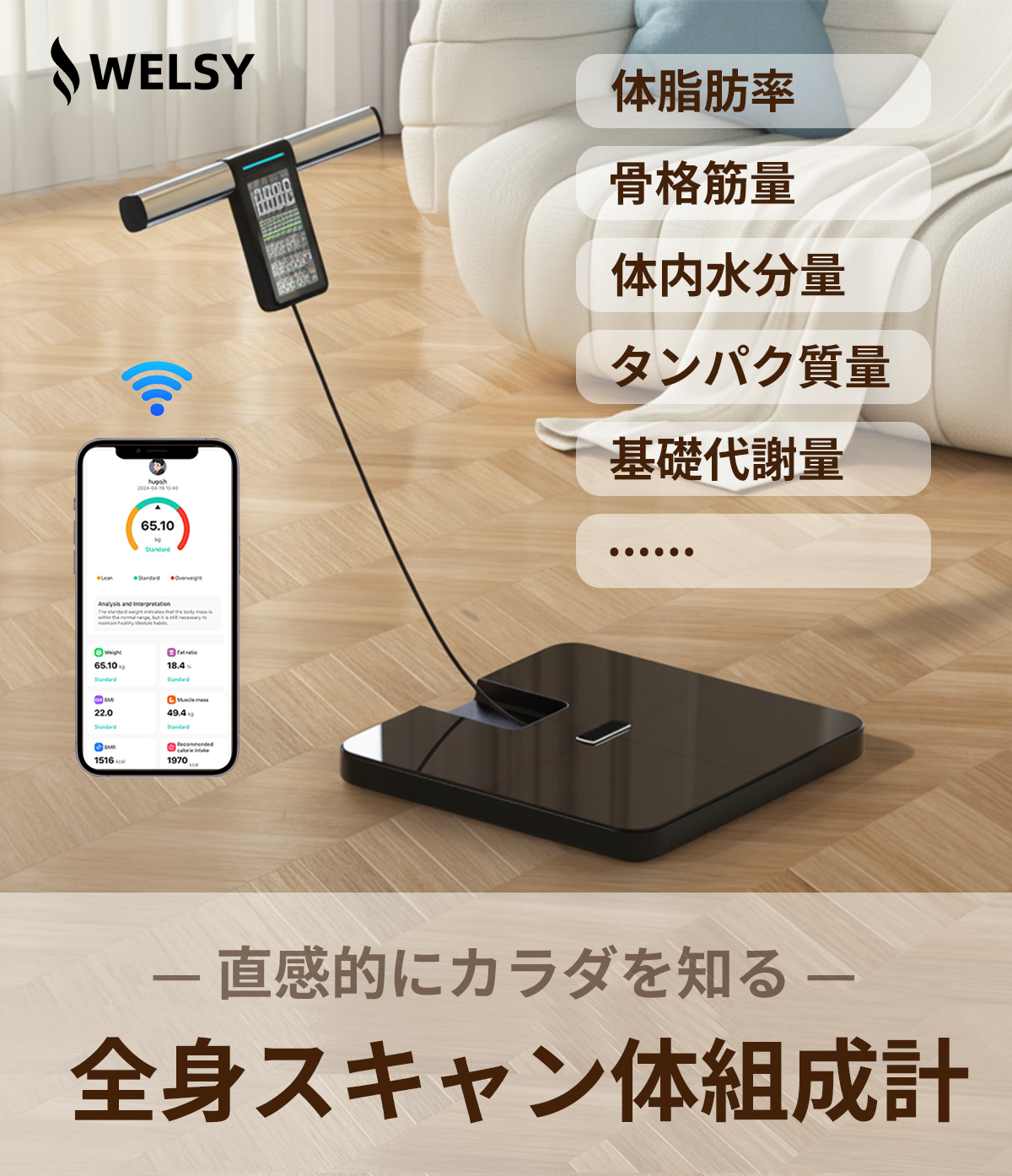 WELSYはデュアル周波BIA法を採用し、従来の家庭用体組成計よりもはるかに深く、正確にカラダをスキャンします。