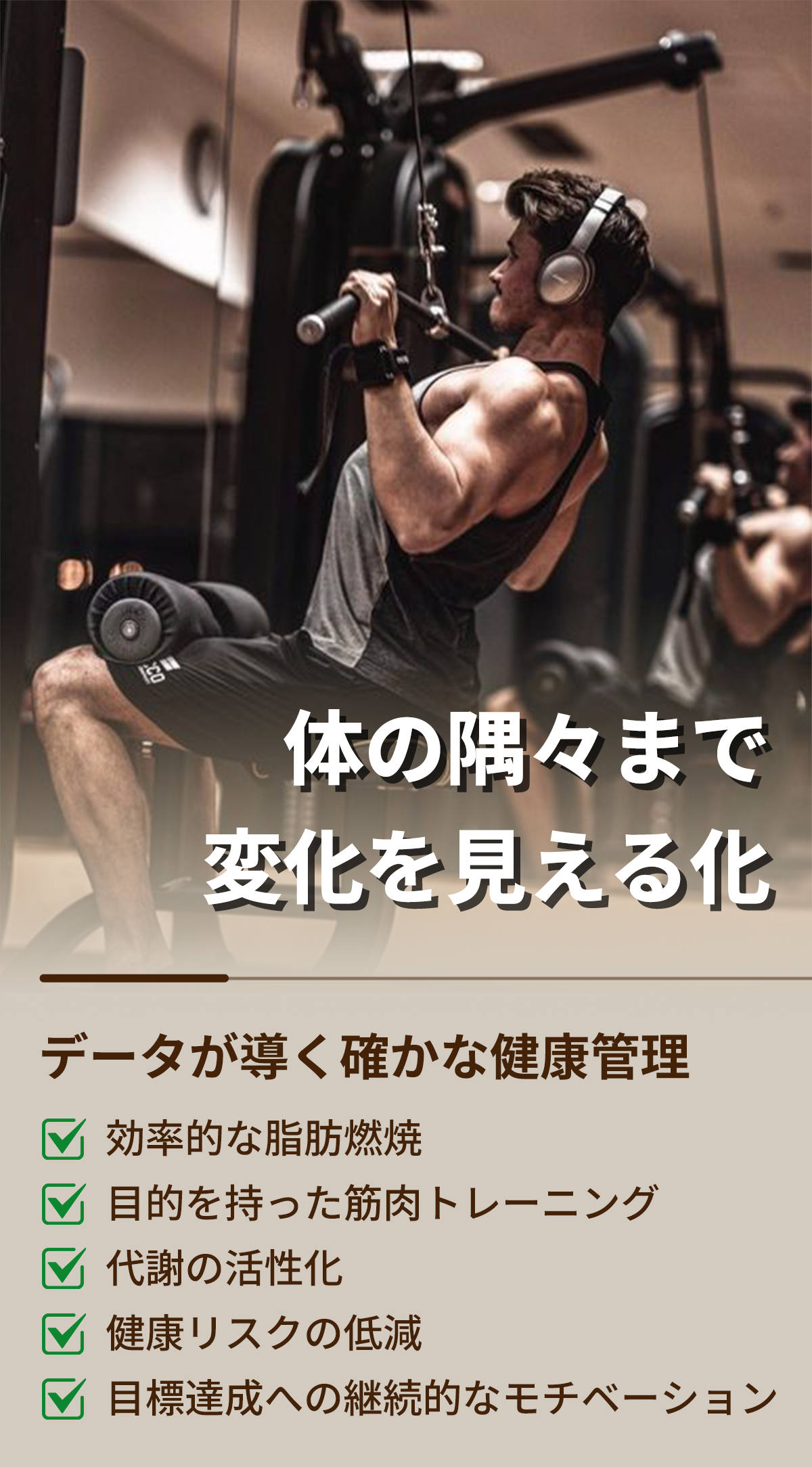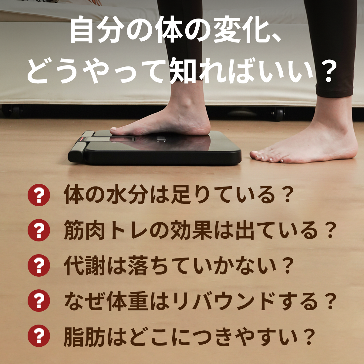 四肢と体幹の部位別分析により、普通の体組成計ではわからない「体の内部の詳細」を可視化します。