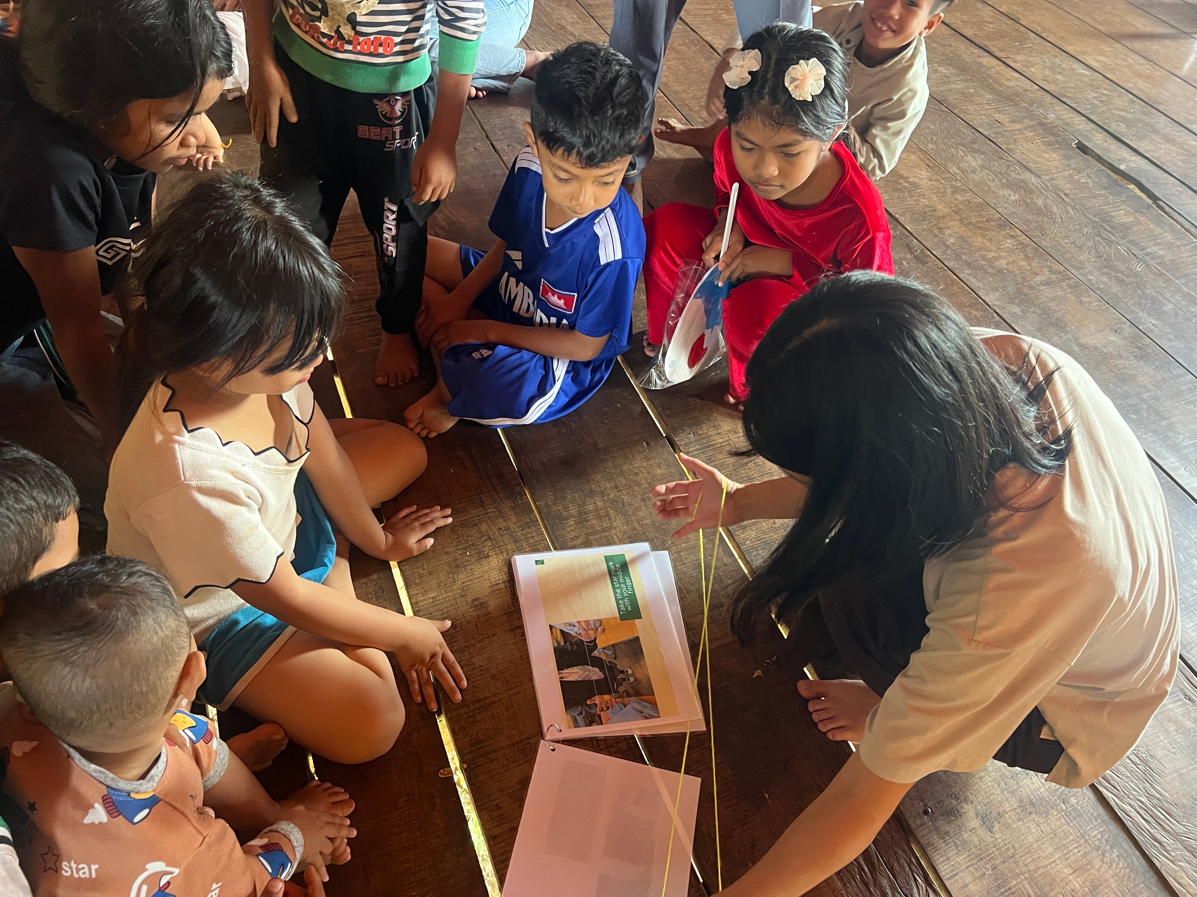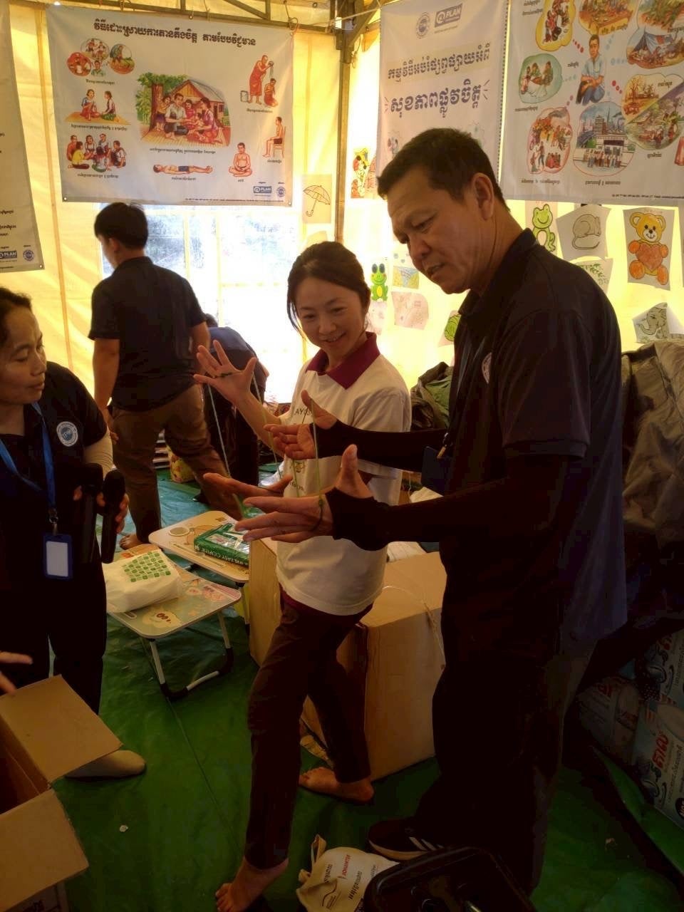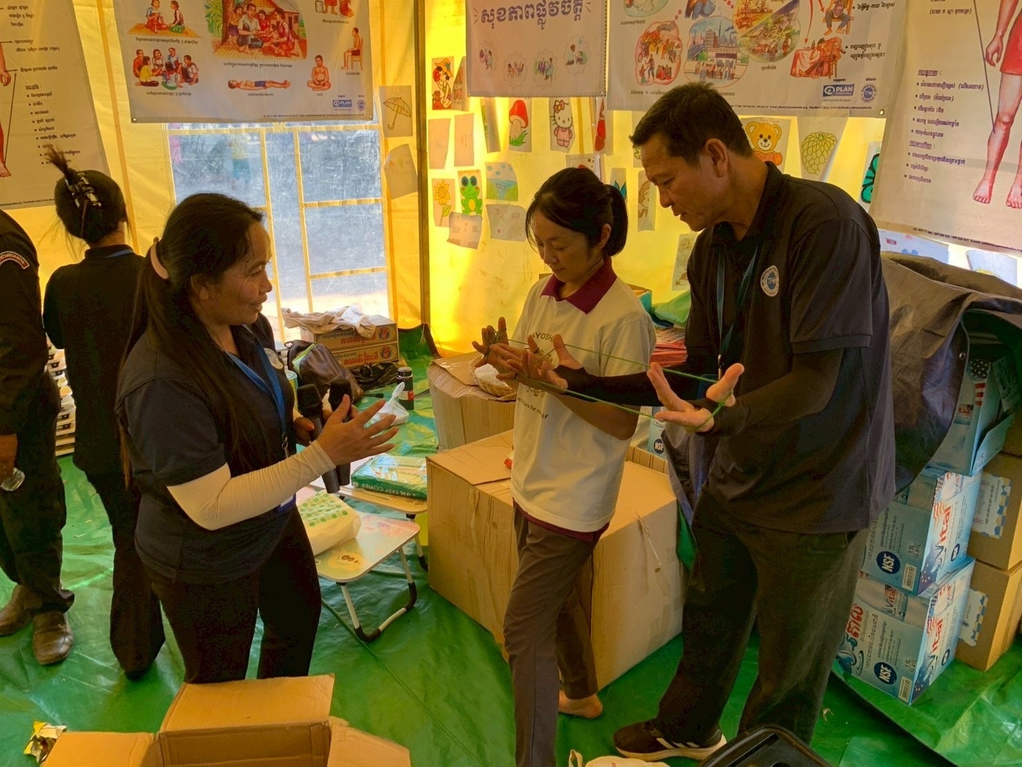 2025年12月29日、カンボジア王国シェムリアップ州Chi Kraeng(チークレン)の避難民収容寺院にて実施した緊急支援(教育支援・炊き出し)では、佐倉市立王子台小学校の「あやとり」および佐倉市立臼井中学校の「アクリルたわし」が現地で活用されました。