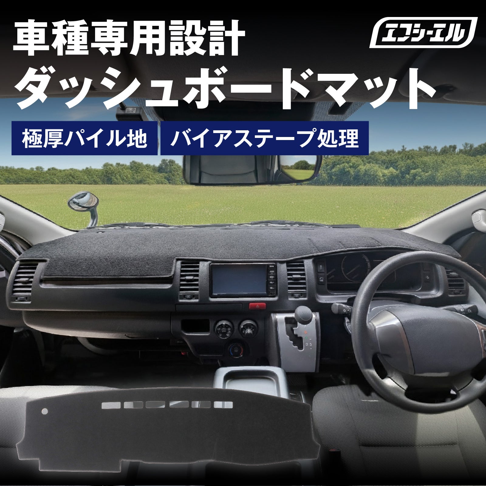 日差しが強い日のドライブにおいて、多くのドライバーを悩ませるのが「ダッシュボードのフロントガラスへの映り込み」です。エフシーエルのダッシュボードマットは、光を吸収する極厚のパイル生地を採用。不快な反射を物理的にシャットアウトすることで、目の疲れを軽減し、よりクリアで安定した前方視界を確保します。