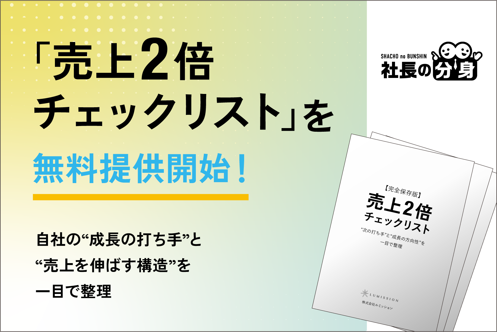 【経営者必見】「売上2倍チェックリスト」を無料提供開始!自社の“成長の打ち手”と“売上を伸ばす構造”を一目で整理