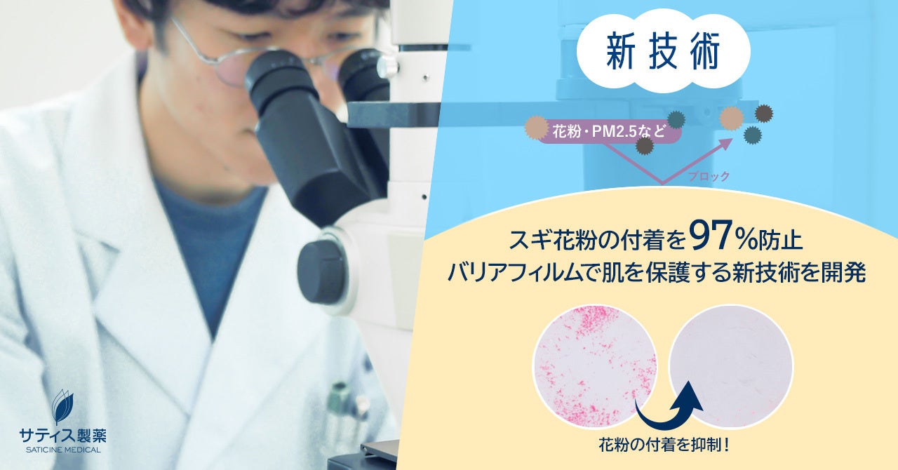 植物性多糖類によるバリアフィルムで肌を保護!スギ花粉の付着を97%防止する新技術を、サティス製薬が開発