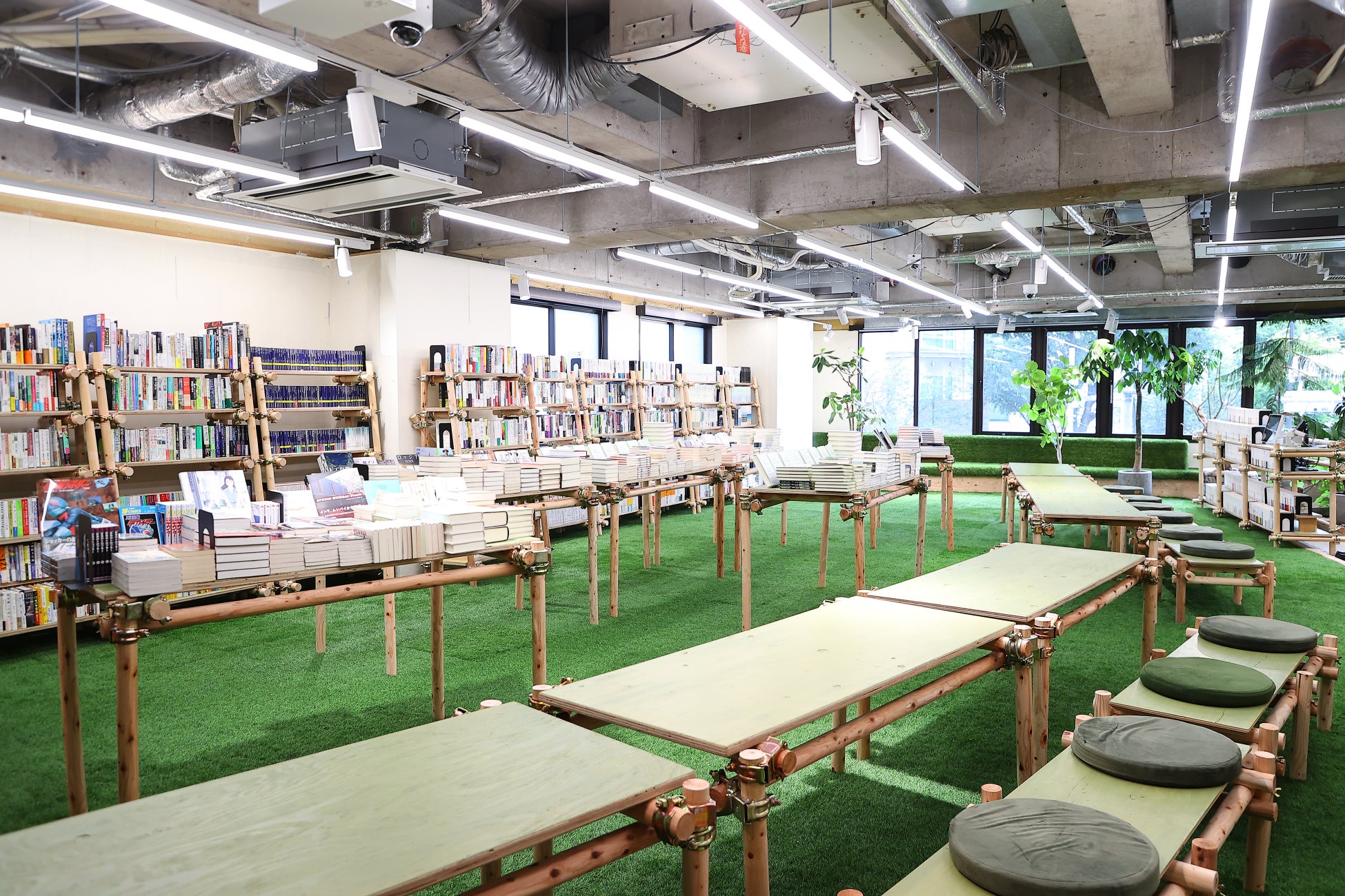 東邦レオの空間づくりのノウハウを活かした店内では、触り心地の良い人工芝を敷き詰め、まるで公園のような内装にすることで、来店者は靴を脱いで居心地良く読書や、ラップトップを用いた作業を行うことのできる環境を提供します。また、同じ空間を使って定期的にトークショーや古本市など様々なイベントも開催予定です。