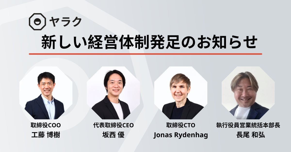 生成AIを搭載した翻訳支援ツール(CATツール*)「ヤラク翻訳」を提供する八楽株式会社(本社:東京都渋谷区、代表取締役:坂西優、以下八楽)は、2025年3月27日付で経営体制の刷新を行い、工藤博樹が新たにCOO(最高執行責任者)および取締役に、また、長尾和弘が執行役員営業統括本部長に就任したことをお知らせいたします。今後は、生成AI(大規模言語モデル:LLM)を活用した革新的な翻訳体験を世界に届けるべく、新体制のもとでさらなる事業成長とグローバル展開を加速してまいります。