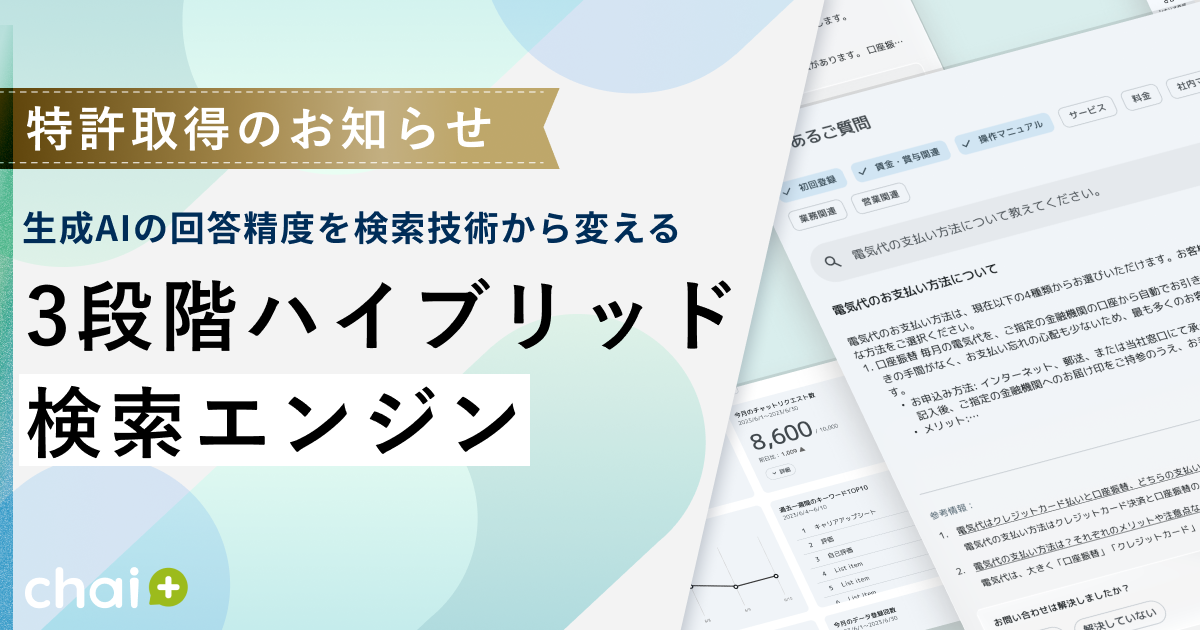 RAG型AIチャットボット「chai+」:「ベクトル検索×キーワード検索×意味的再ランキング」3段階ハイブリッド検索エンジンの特許取得のお知らせ