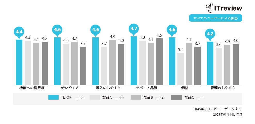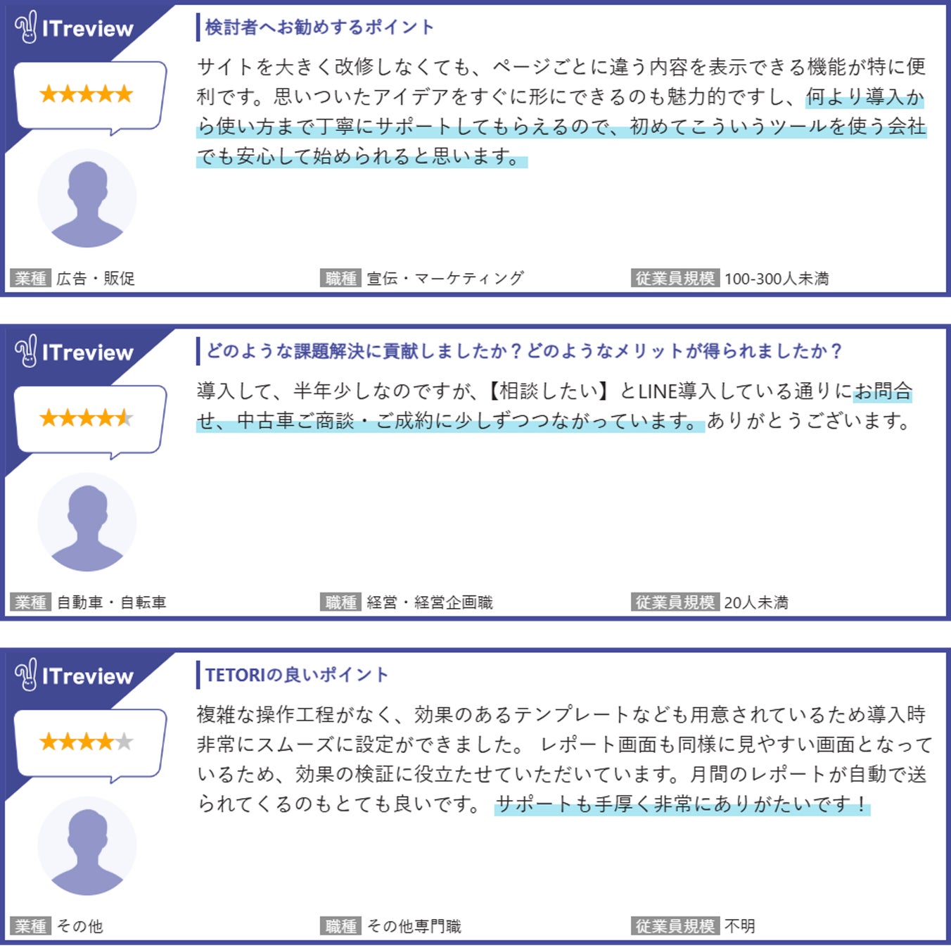 「ITreview」に投稿されたTETORI利用者のレビュー(一部抜粋)