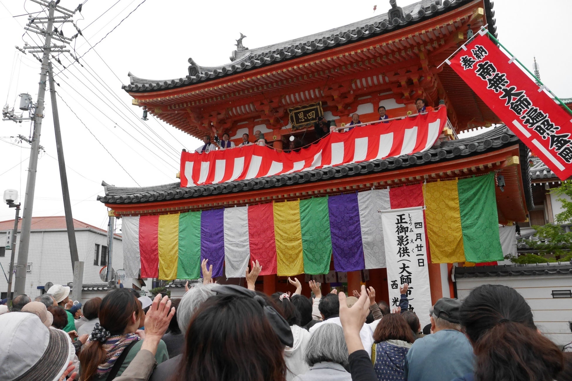 - 100年以上続く「大師市」会場で大賞を発表。大賞エピソードはその場で妖怪画になります。