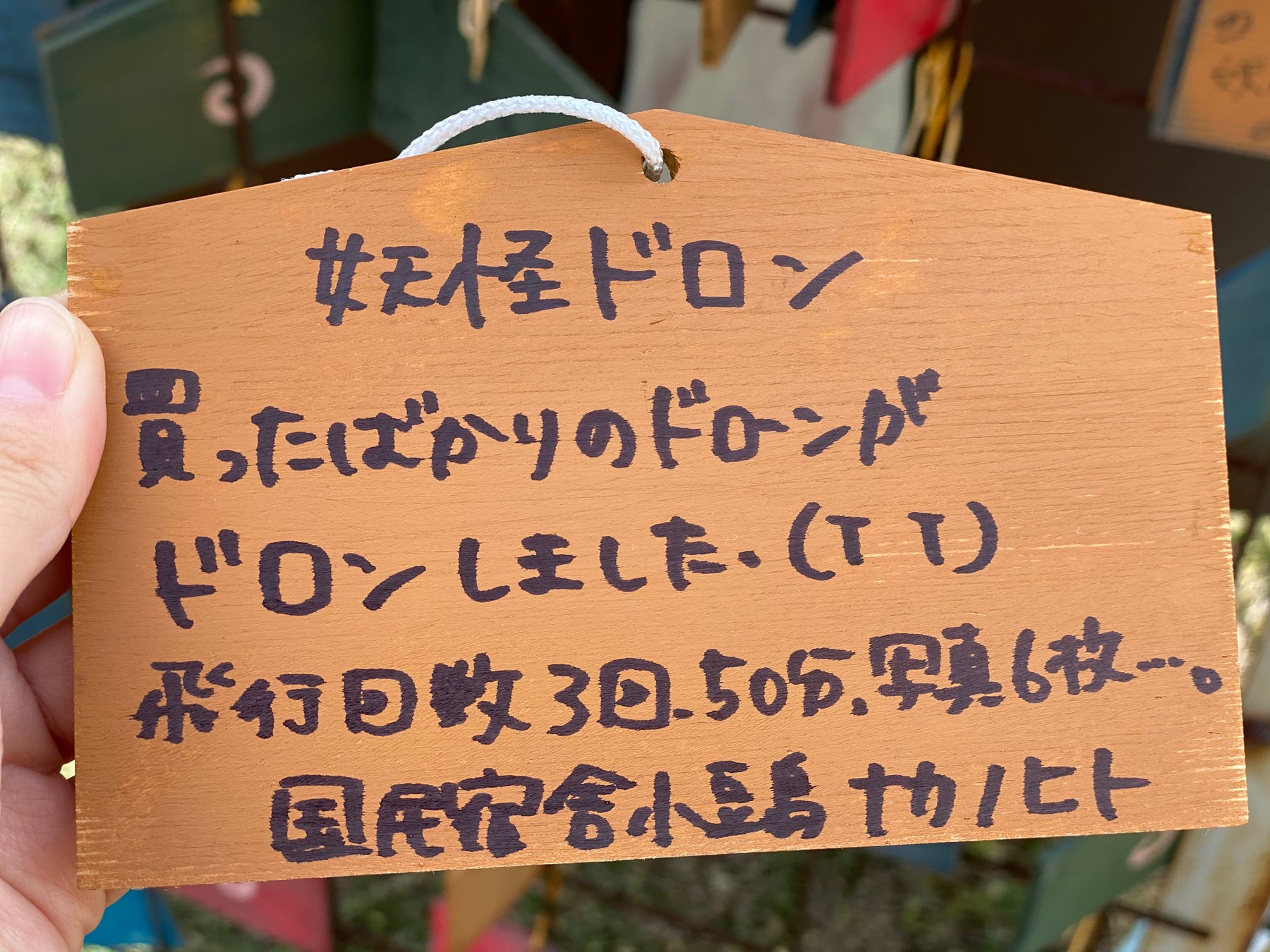 行方不明になったドローンの悲劇をなかったことにしたいと絵馬に書いて奉納