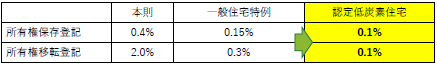 ≪認定低炭素住宅の登録免許税 税率≫(令和6年3月31日までに取得の場合)