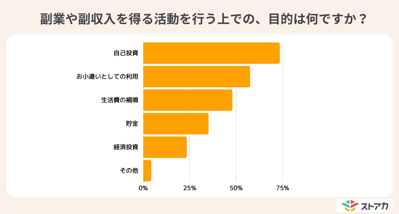 これにより、副業が単なる追加の収入源だけでなく、自己成長や能力向上のための資金源として重要な役割を果たしていることが示されます。