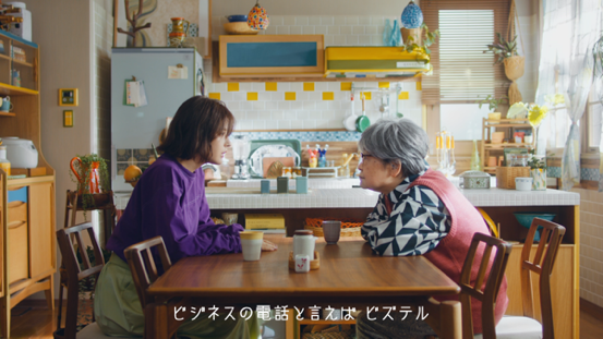 祖母は「BIZTEL(ビズテル)」の発音がちょっと変。松本さん扮する女性が正しい発音を教えます。ところが、祖母はふざけていただけで、本当は正しく発音できることが判明。呆れる女性と自信満々の祖母の、微笑ましい姿が最後を締めくくります。