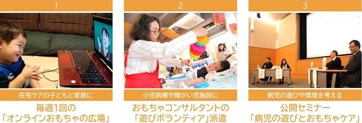 また2020年にコロナ禍に入った直後には、いち早く活動の場をオンラインへと切り替え、在宅ケアを必要とする子どもたちに「オンラインおもちゃの広場」を通して遊びを届け続けてまいりました。