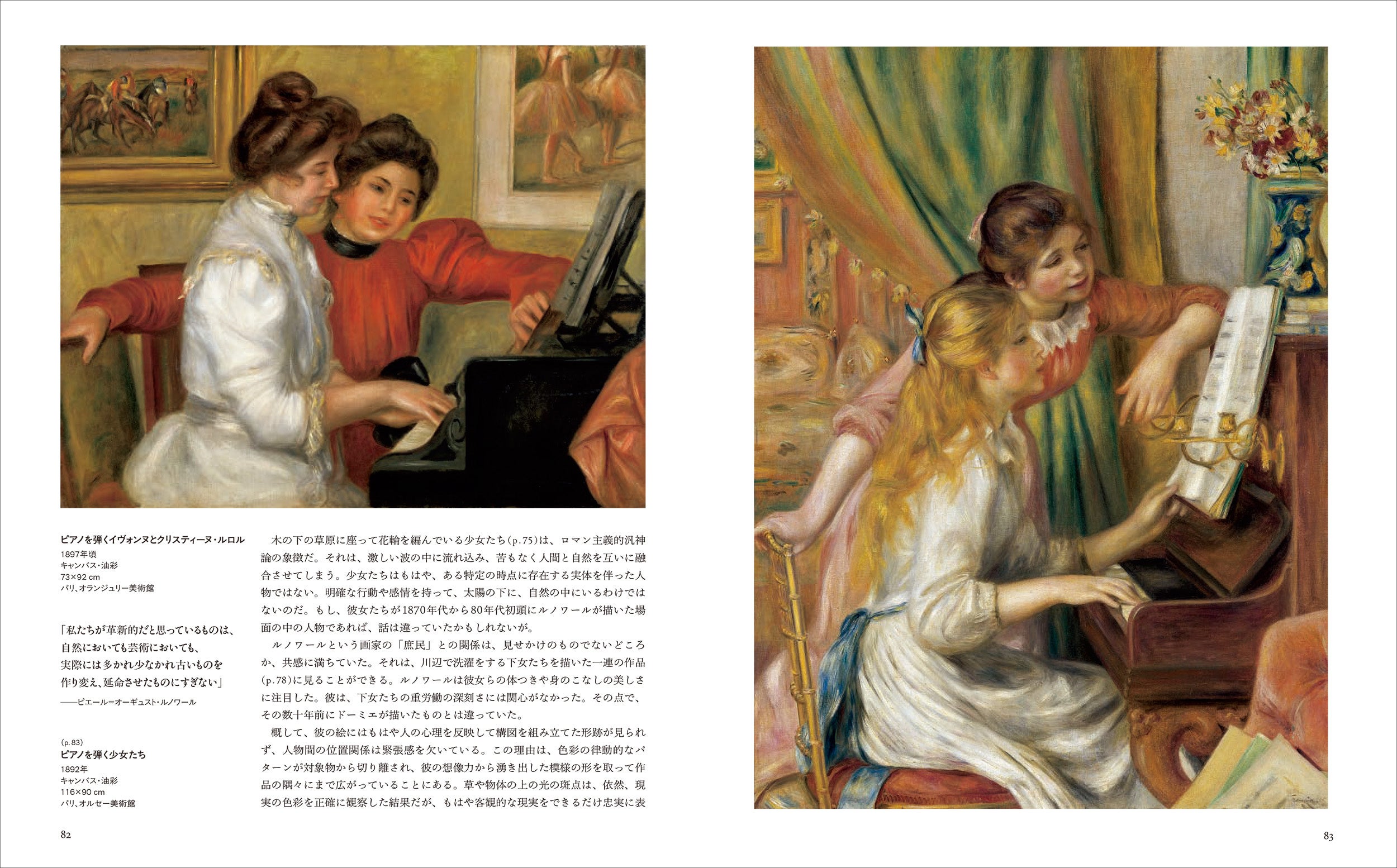ピエール=オーギュスト・ルノワール(1841‒1919)は、陽光あふれる官能的な作品で時代を超えて人々を魅了してきました。モネなど同時代の画家仲間と共に色彩の改革に挑む一方、親密感と優しさをたたえた恋人や母親、数多くの裸体に魅せられ、その姿を瑞々しく描きました。本書は、数千点におよぶ作品群から《プロムナード》《ムーラン・ド・ギャレットの舞踏会》《ピアノを弾く少女たち》など重要作77点を厳選収録。貧困や戦争、老いと病に苛まれた人生の後半まで、苦難を乗り越えながら、幸福を追求し続けた画家の生涯をたどります。