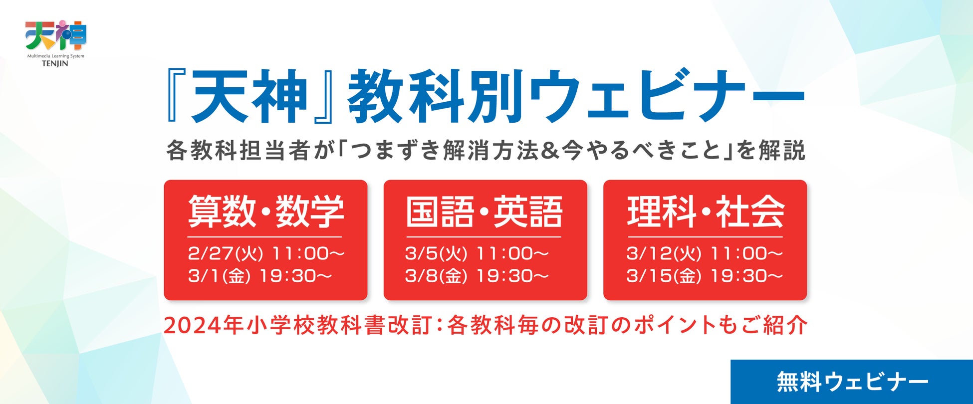 テーマ:「天神」教科別ウェビナー「つまずき解消方法&今やるべきことは?+2024年教科書改訂について解説します」