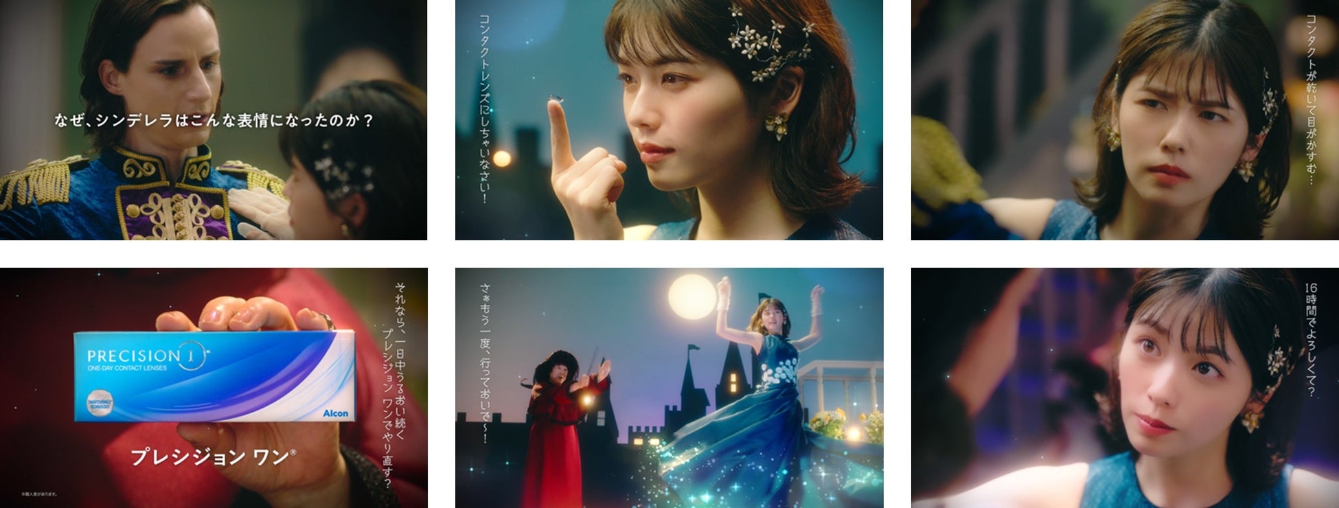 本動画CMでは、目の乾きや、目のかすみといった「コンタクト装用時の不快感」や、それらの不快感から来る、眉間のしわや目つきが悪くなるなどの“目元や表情への影響”を、多くの方に知られる物語「シンデレラ」を題材に、小芝風花さん演じるシンデレラがリアルに表現しています。