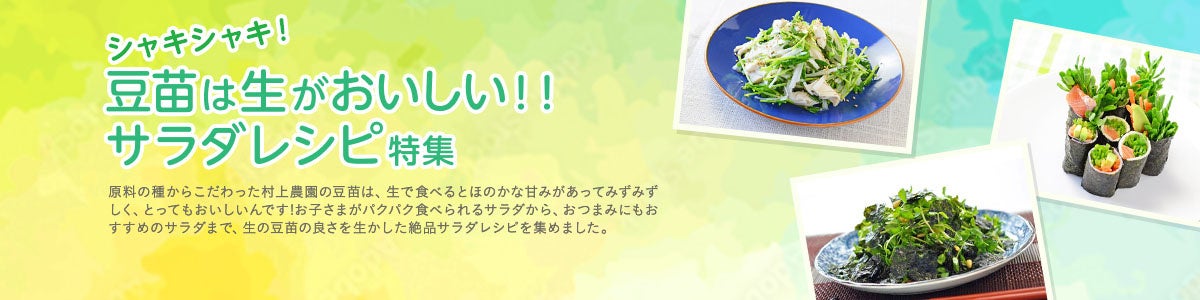 そこで村上農園は、生の豆苗のおいしさを皆さまに知っていただきたく、様々なサラダレシピを集めたレシピ特集ページを公式サイト内に設け、サラダが食卓で活躍するこれからの時期に向けて公開します。