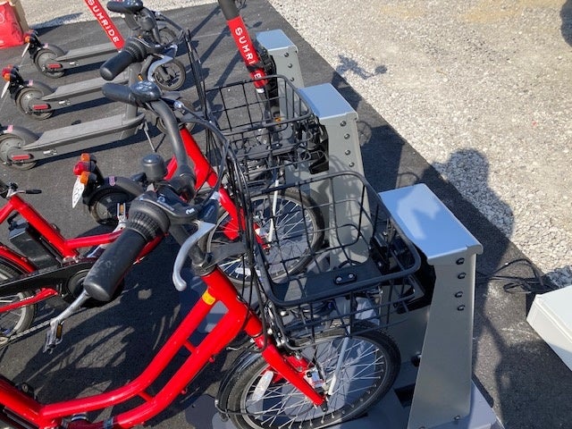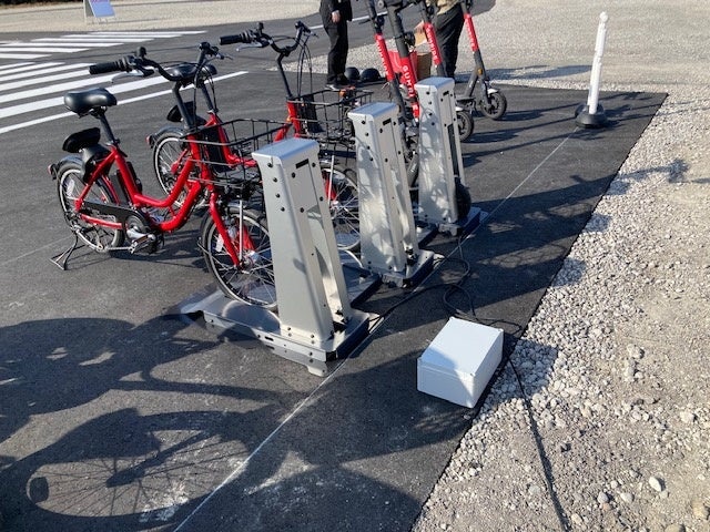 - キックボードと電動自転車の共通の『ハイブリット充電スタンド』で利便性向上