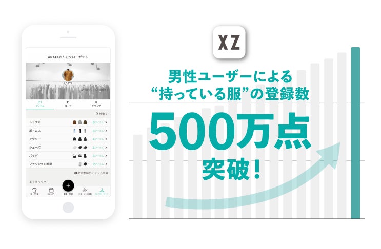 男性会員25万人超え!コーディネート提案や洋服管理ができるファッションアプリ「XZ(クローゼット)」メンズの“持っている服”の登録数が500万点を突破