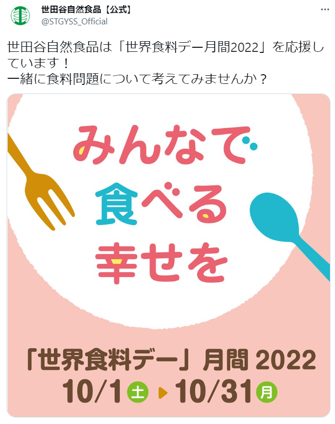公式Twitterにて、「世界食料デー」月間の周知活動をおこなっています。