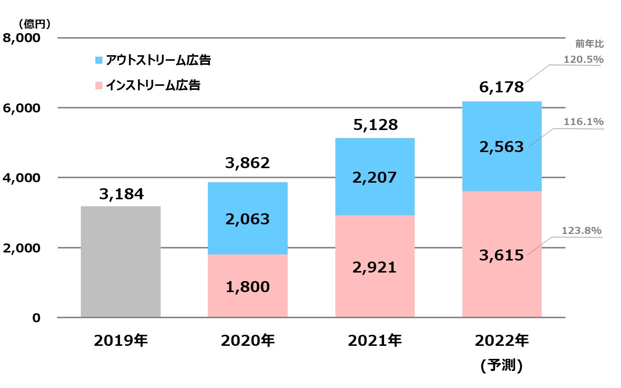 ~ビデオ(動画)広告は、2022年には6,178億円まで拡大する見込み~