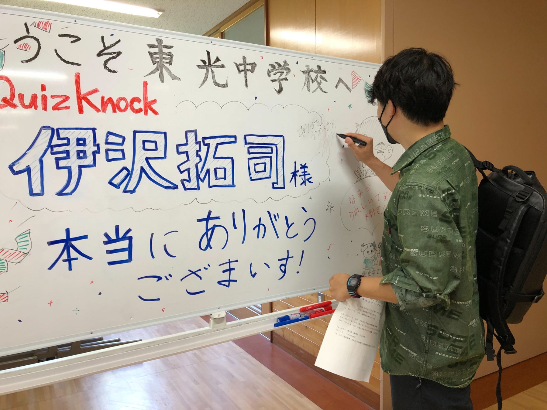 QuizKnockが全国の中学校・高校を訪問するプロジェクト「QK GO」が再開し、伊沢拓司が9月13日(火)に北海道岩見沢市立東光中学校を訪問しました。