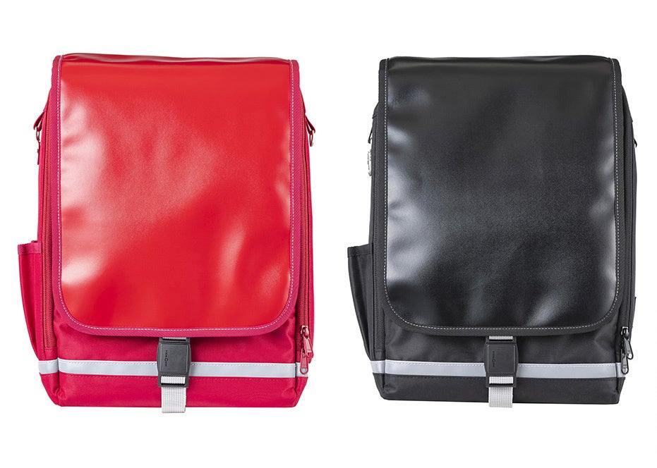 フットマークでは「RAKUSACK® JUNIOR」シリーズの新モデル「RAKUSACK JUNIOR-PLUS(以下、ラクサックジュニアプラス)を発売します。かぶせフタの部分を合皮にし、撥水加工を追加。革製のランドセルと見た目の違和感がないデザインに仕上げています。また3Dパターンで形成された肩ベルトを改良し、より体に密着する構造になりました。