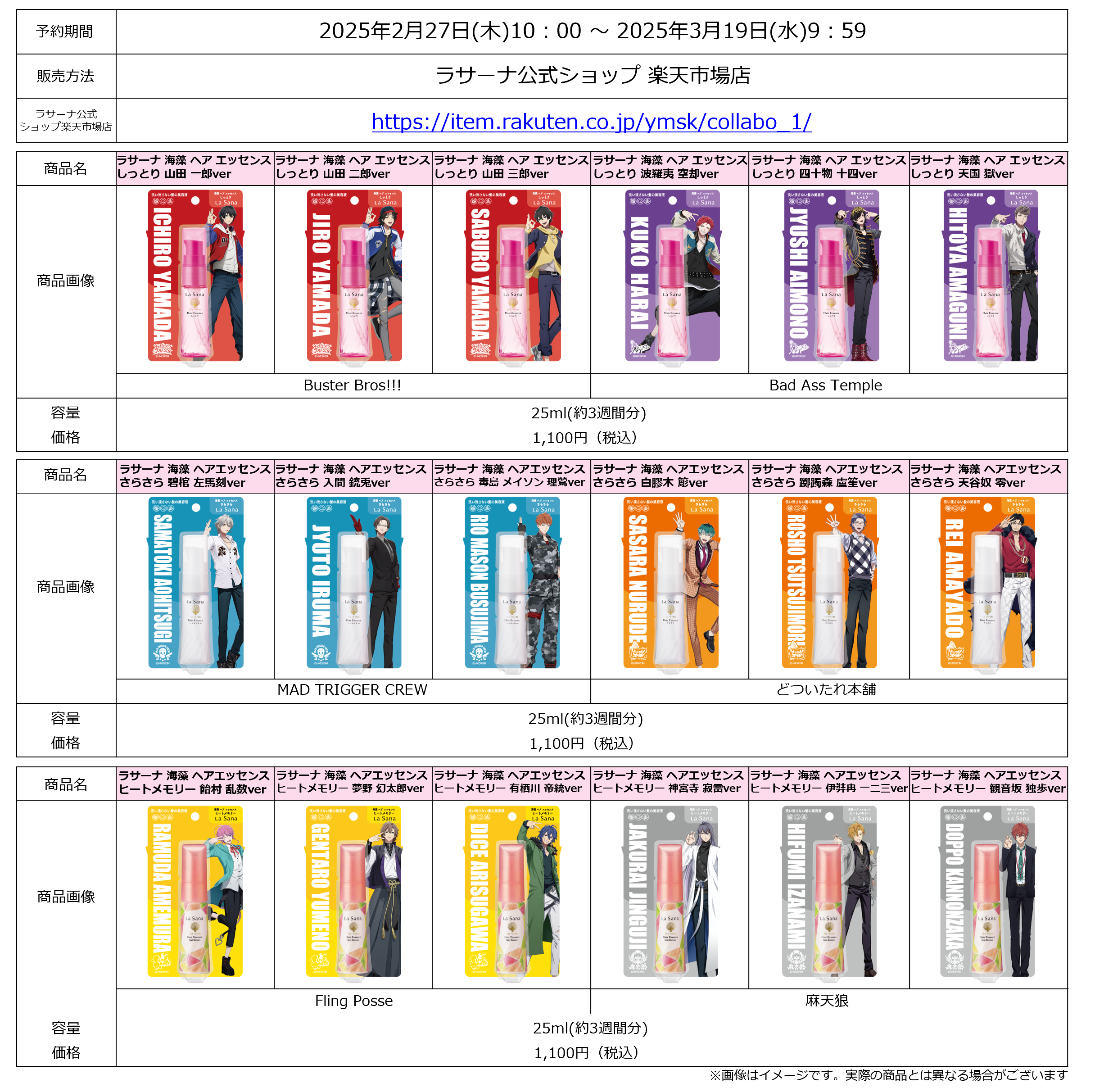 \ラサーナ初!/ \完全予約販売!/ ラサーナの洗い流さないトリートメントが『楽天市場×ヒプノシスマイク』映画公開記念コラボ企画に参加!2025年2月27日(木) 10:00から 予約開始