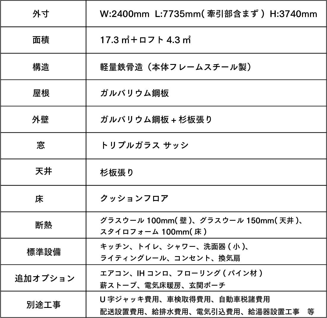 ロフトスペースを含む約20㎡の広い空間でありながら車検が取得できるトレーラーハウス(ナンバー付き)で、高断熱・凍結対策の標準仕様はもちろん、薪ストーブや床暖房などのオプション機能も選択できる為、寒冷地においても豊かな自然の中の滞在・暮らしを実現します。