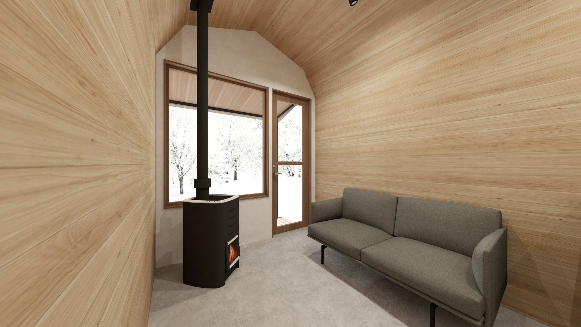 オプションの薪ストーブを設置することで、雪景色の中でも暖を取りながら火のある暮らしを楽しむことができます。