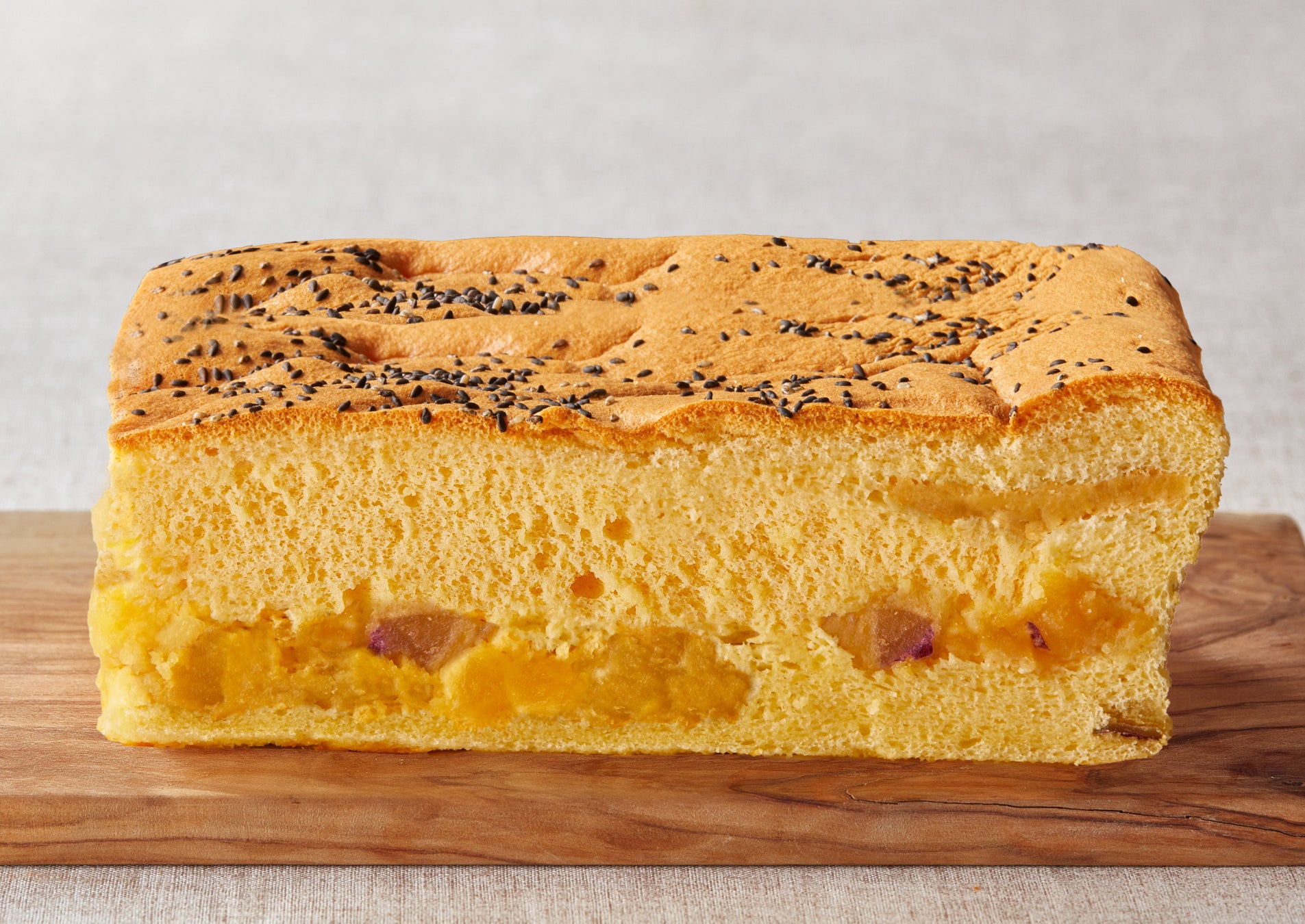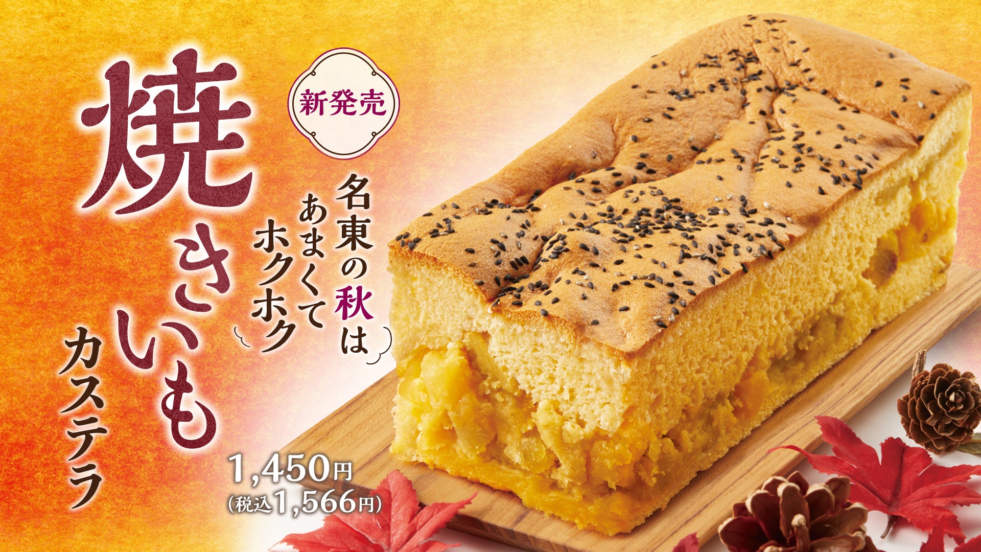 秋の味覚が美味しい季節にピッタリ!の限定カステラが新登場です!濃厚な味わいの焼きいもフィリングを、たっぷりとサンドしました。やわらかな口あたりのカステラ生地との相性バツグンです。この季節だけの新しい名東の美味しさをぜひお試しください。
