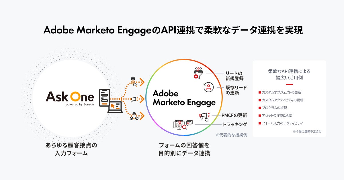 Adobe Marketo Engageユーザーは、Ask Oneのインタラクティブなフォームを活用することでより幅広いユーザー接点で顧客の声を収集することができ、営業・マーケティングのアクションを最適化していくことが可能になります。