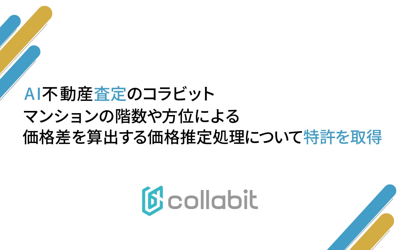 株式会社コラビット(本社:東京都港区、代表取締役:浅海剛)は、2025年4月2日(火)に中古マンションの階数や方位による価格差を算出する価格推定処理について特許を取得しましたので、ここにお知らせいたします。