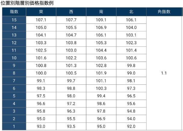 鑑定評価における階層格差や位置別効用比率は、算出しようとすると非常に難易度が高いです。エリアごと、時点ごと、建物の個別を加味して階数や方位の差額を計算するには常にデータを収集して機械学習を回す必要があり、現実的には不動産鑑定士の経験や知見に基づき比準を行うケースが多いと思います。