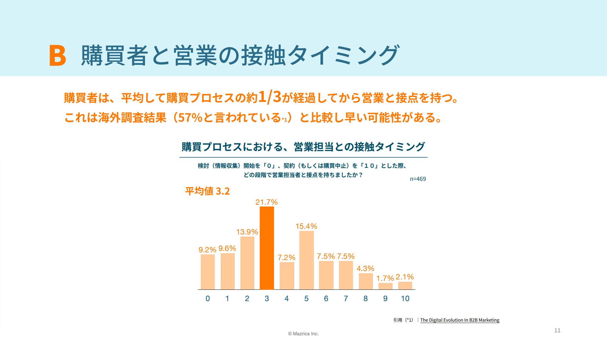 2.購買者は、平均して購買プロセスの約1/3が経過してから営業と接点を持つ